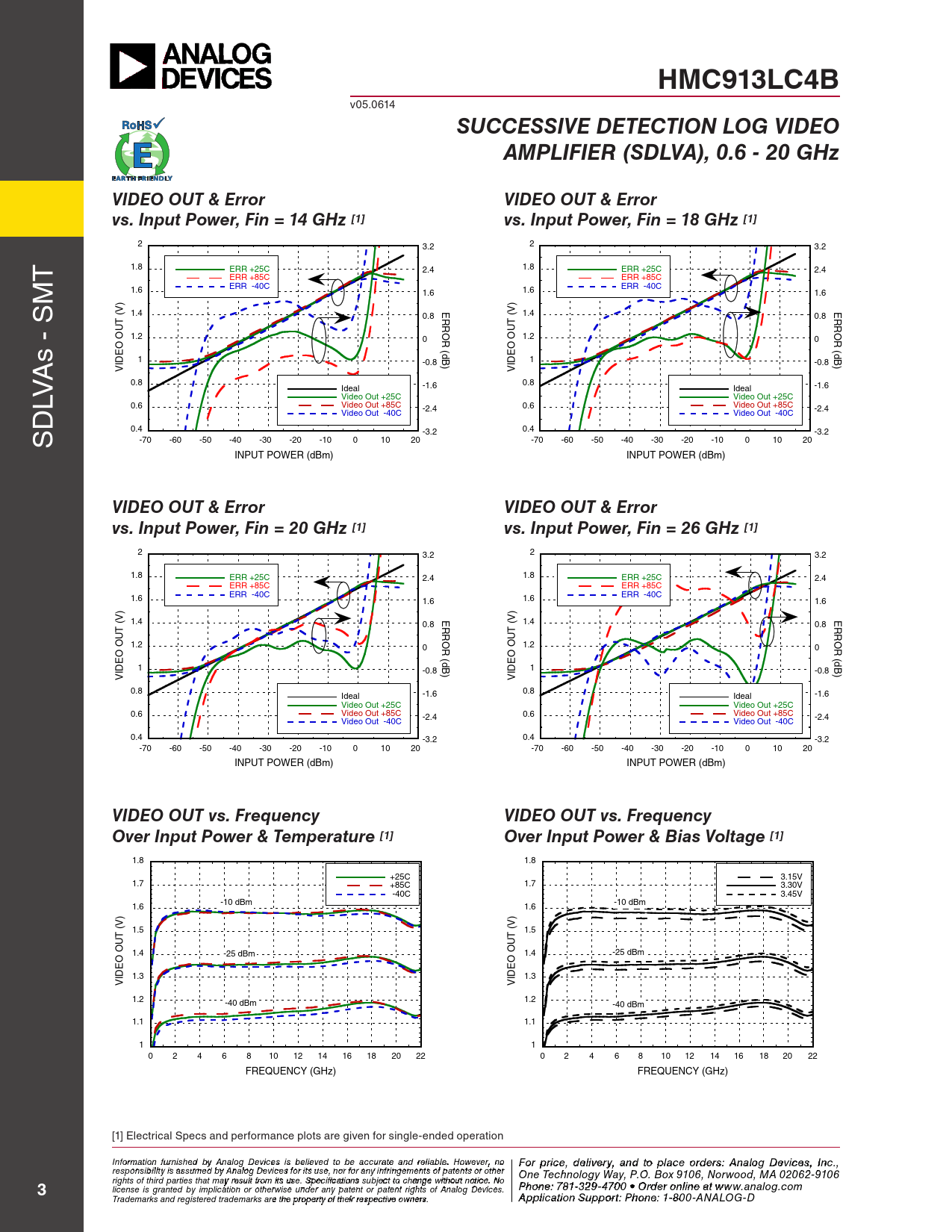 HMC913LC4B. SUCCESSIVE DETECTION LOG VIDEO. AMPLIFIER (SDLVA), 0.6 - 20 GHz. VIDEO OUT & Error