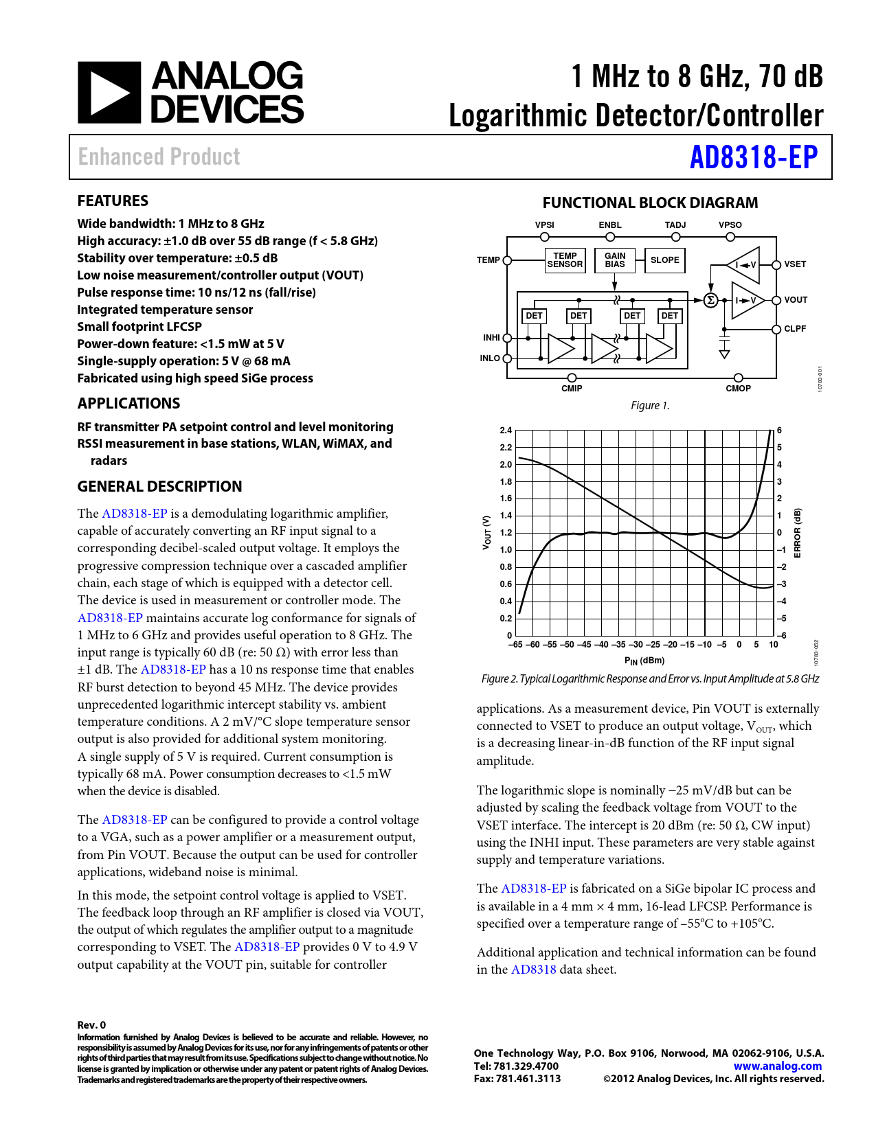 ±1 dB. The AD8318-EP has a 10 ns response time that enables
