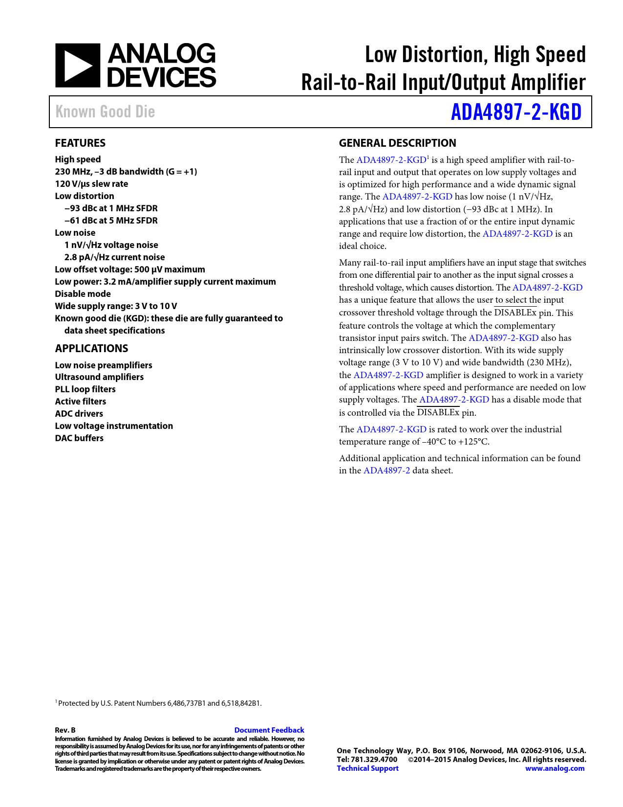 Datasheet ADA4897-2-KGD (Analog Devices)