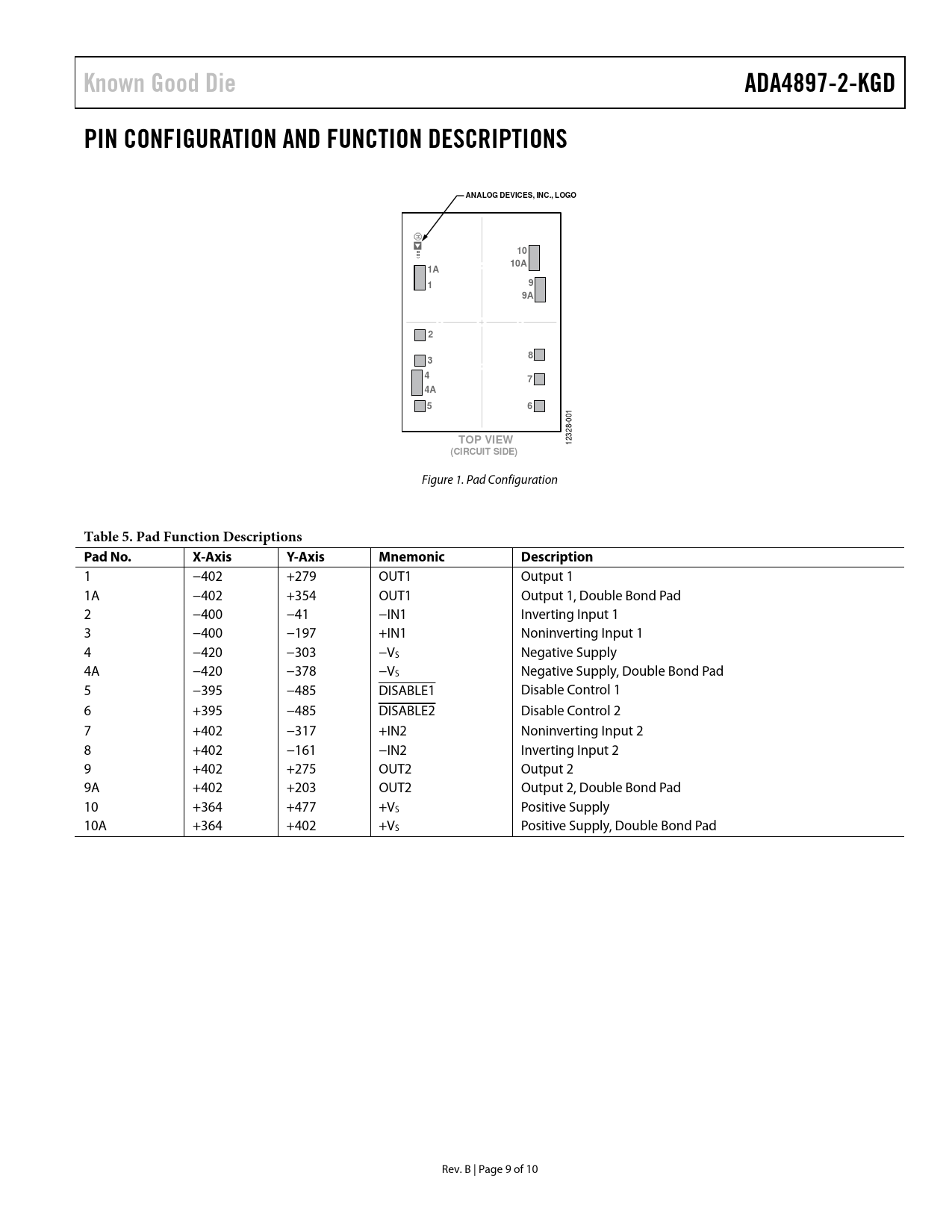| Seiten / Seite | 10 / 9 — Known Good Die. ADA4897-2-KGD. PIN CONFIGURATION AND FUNCTION … |