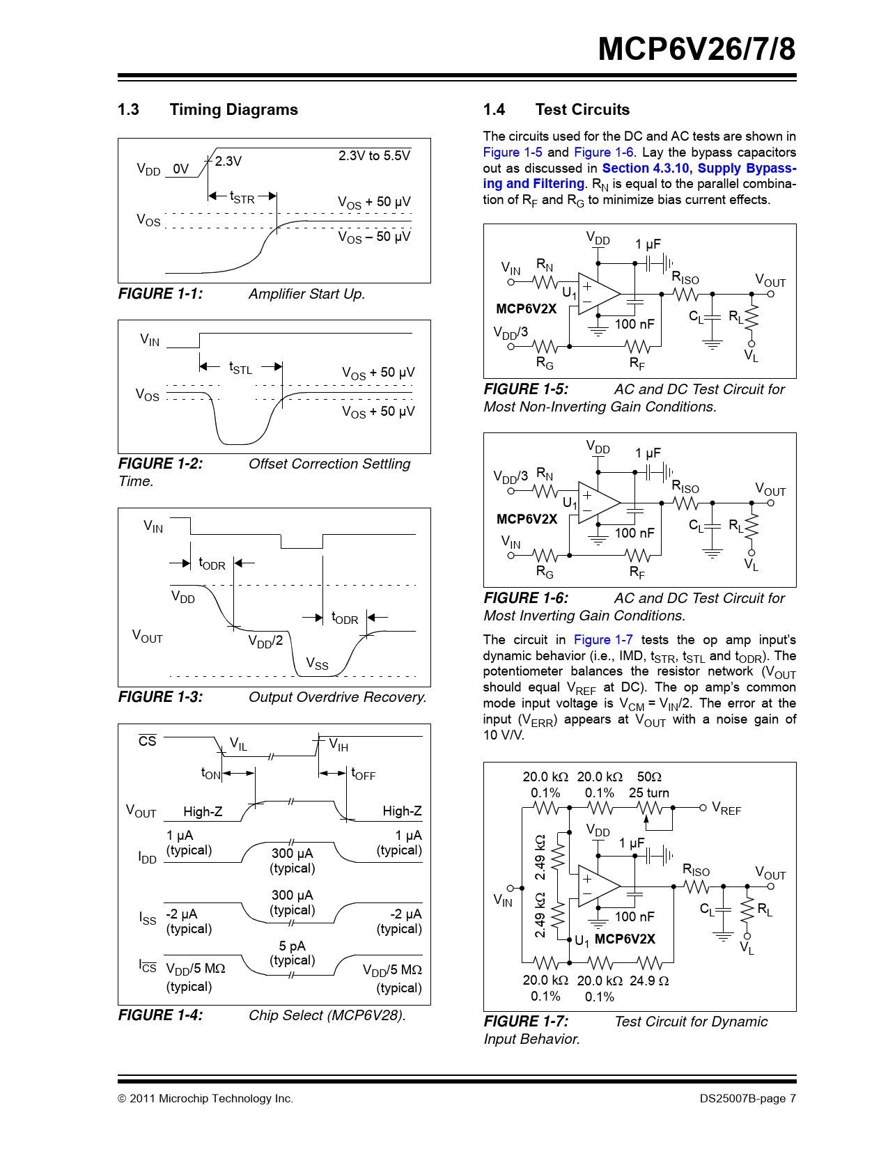| Seiten / Seite | 50 / 7 — MCP6V26/7/8. 1.3. Timing Diagrams. 1.4. Test Circuits. Section 4.3.10, … |