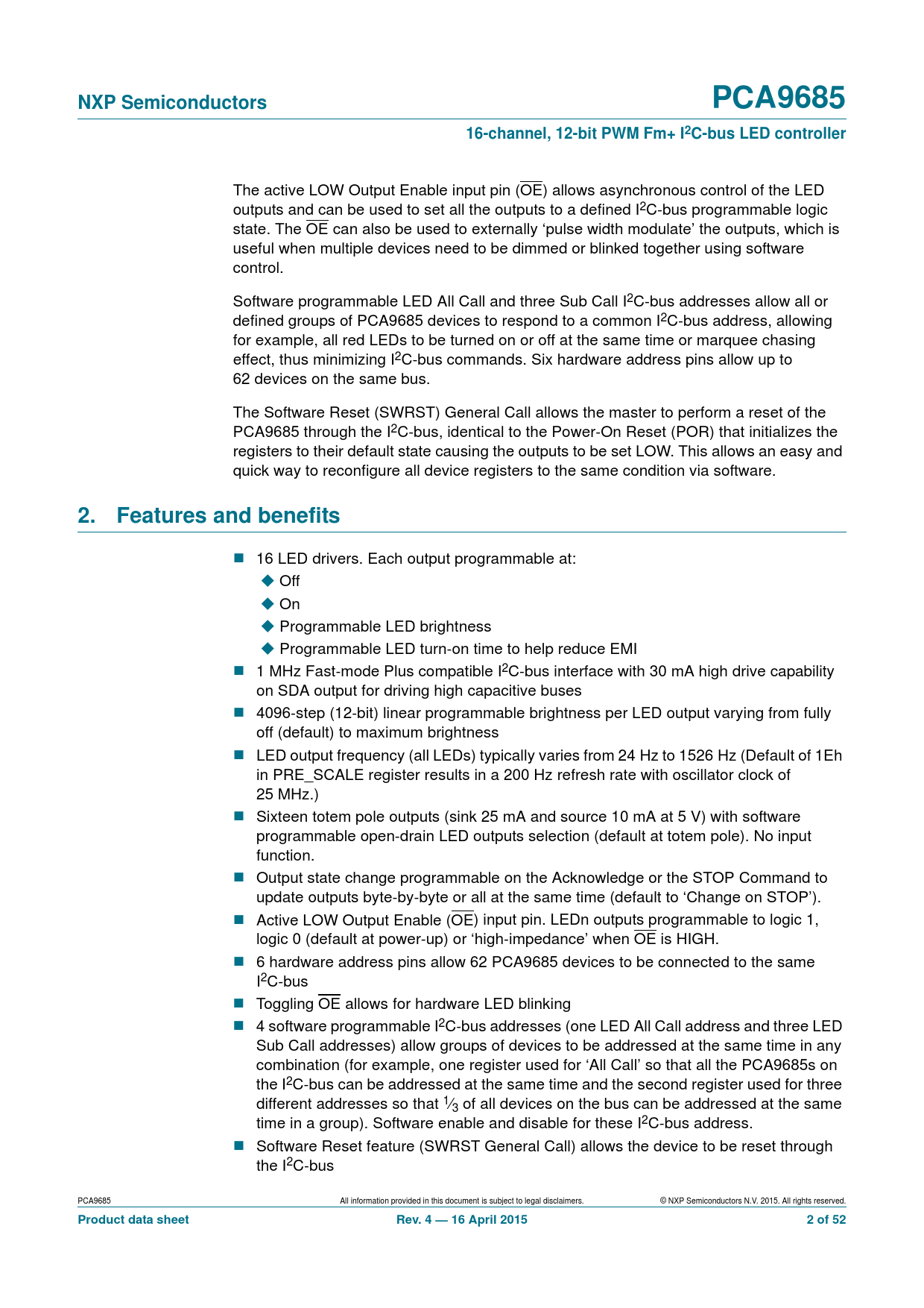 | Seiten / Seite | 52 / 2 — NXP Semiconductors. PCA9685. 16-channel, 12-bit PWM Fm+ I2C-bus LED … |