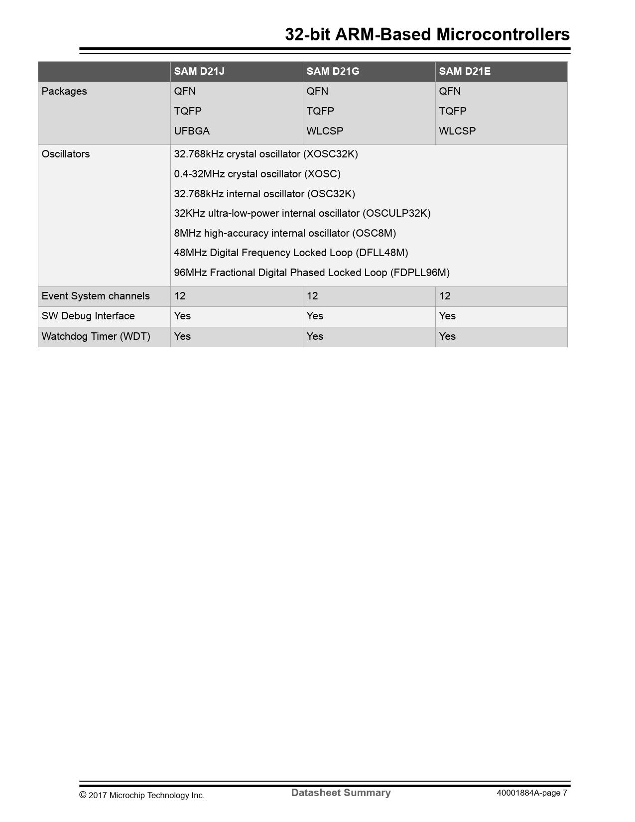 Datasheet Summary SAM D21E, SAM D21G, SAM D21J (Microchip) - 7