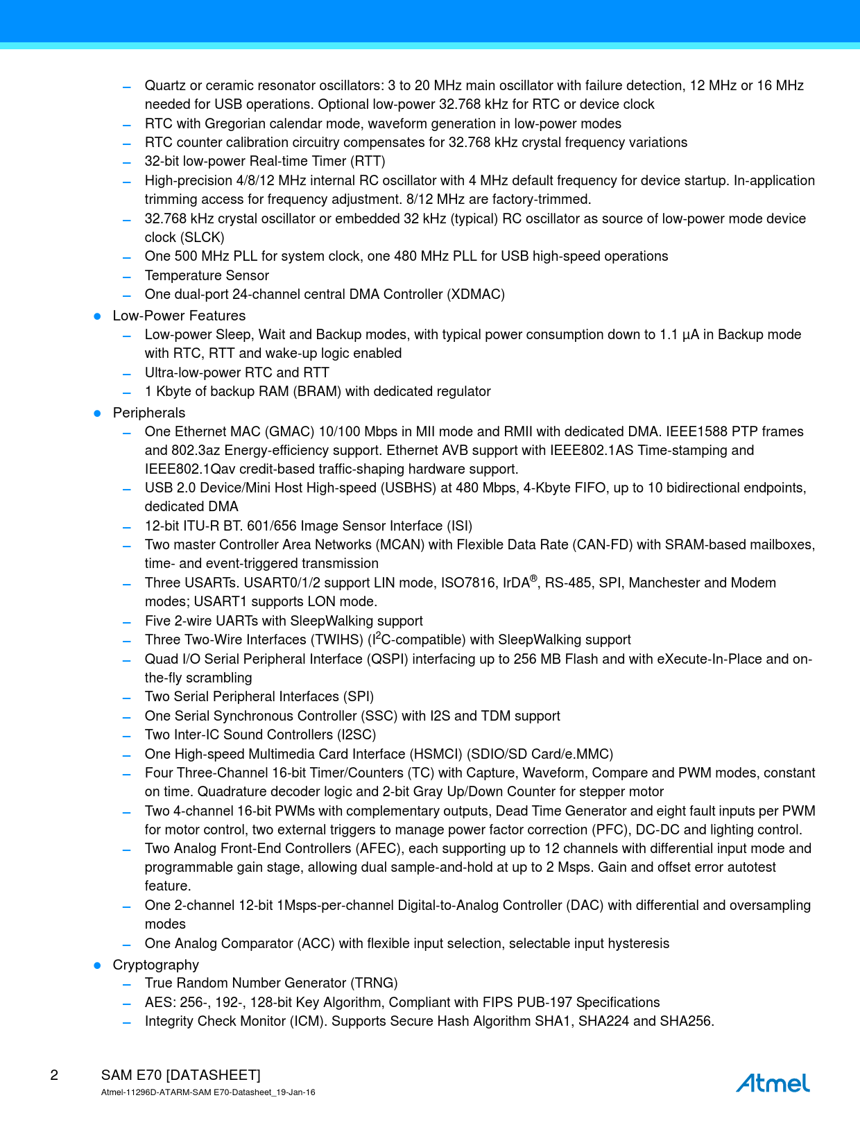 Datasheet SAM E70 (Microchip) - 2