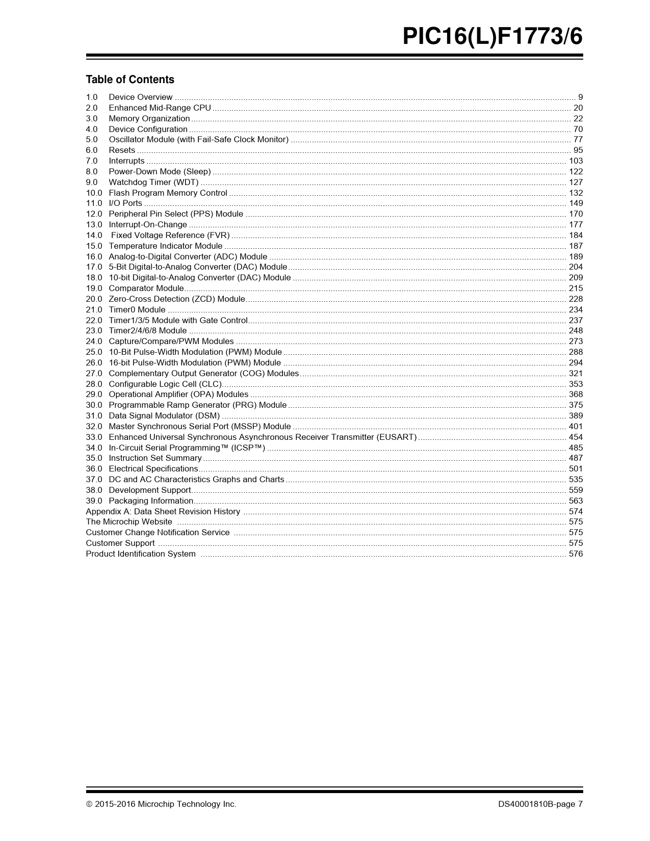 PIC16(L)F1773/6 Table of Contents