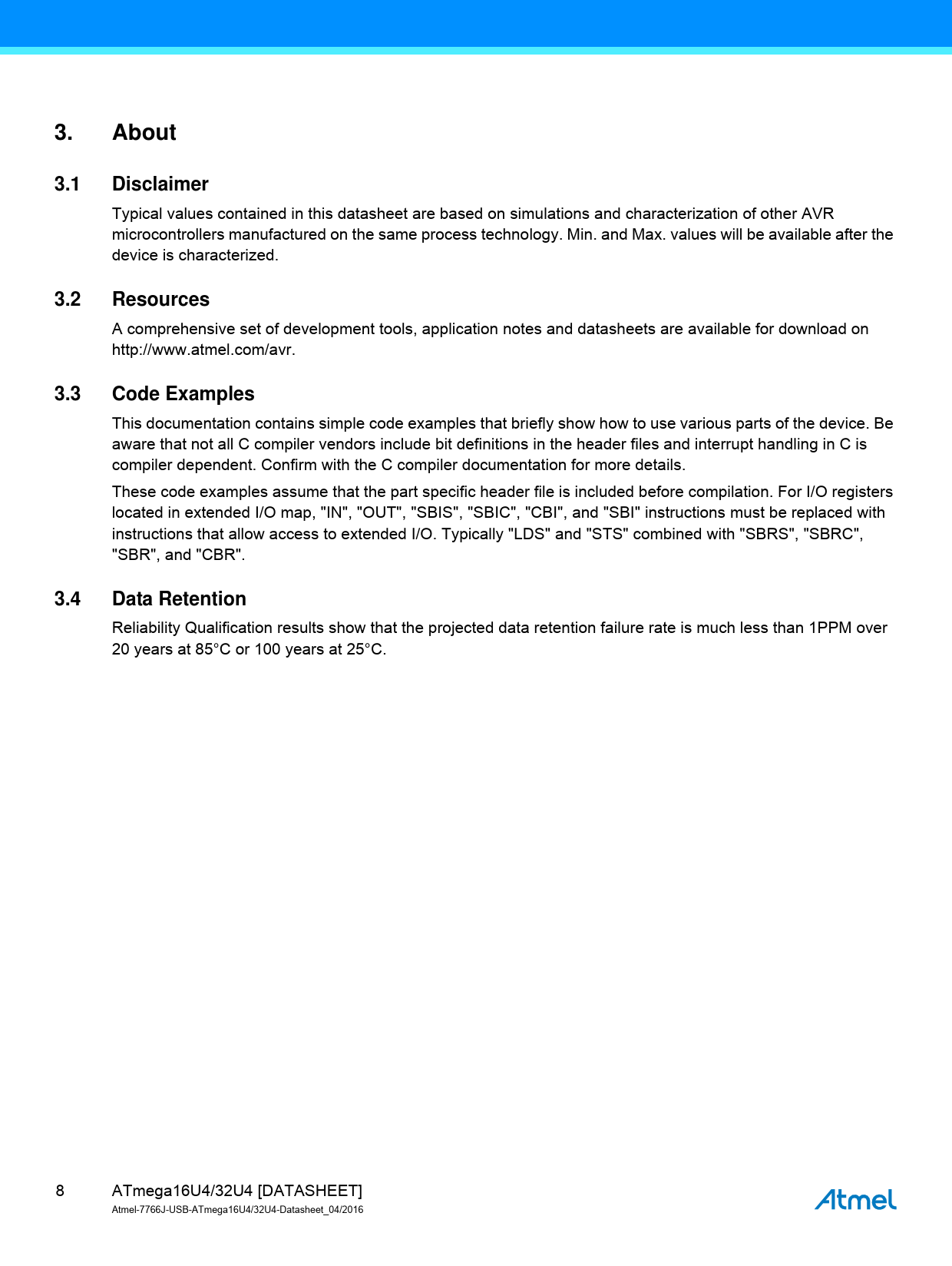 Datasheet ATmega16U4, ATmega32U4 - Complete (Microchip) - 8