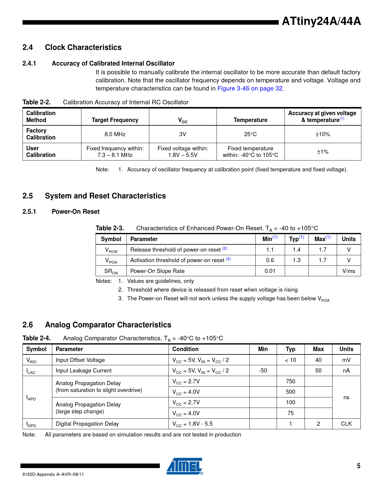 2.6 Analog Comparator Characteristics Table 2-4.