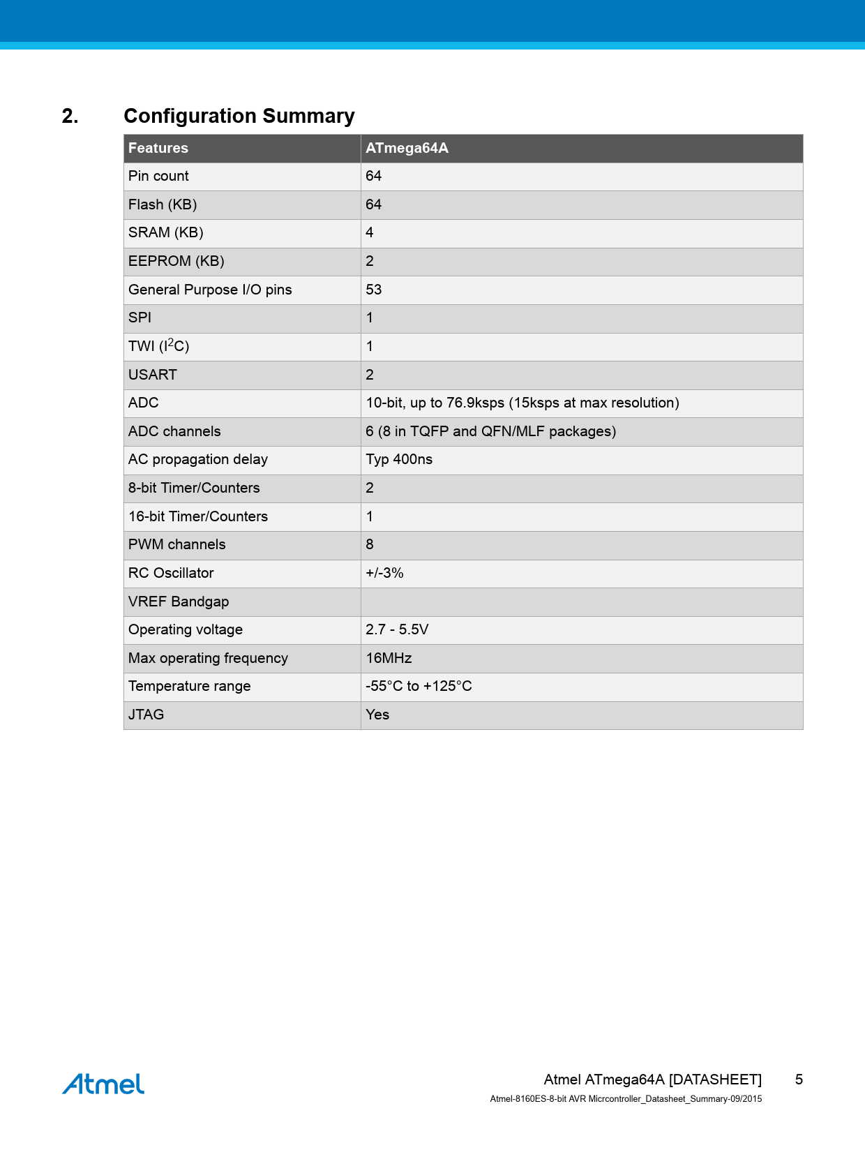 2. Configuration Summary Features ATmega64A