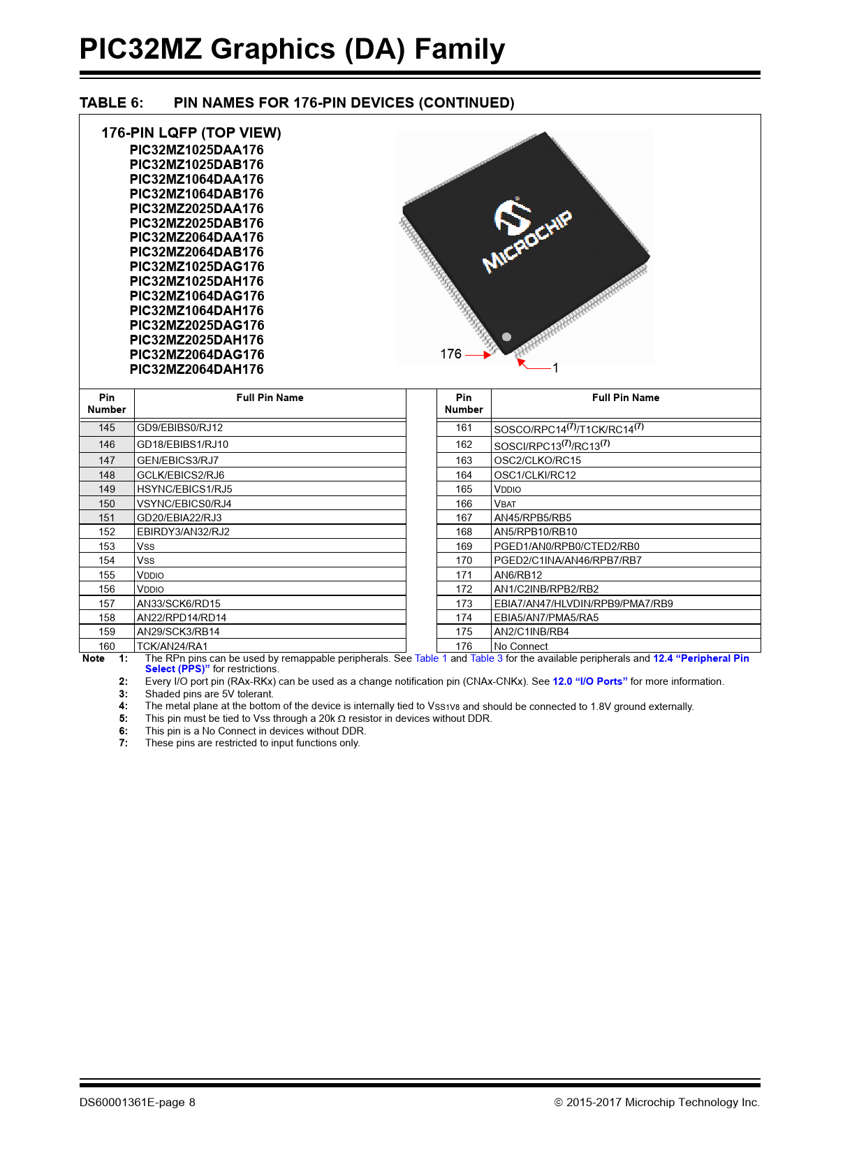 | Seiten / Seite | 808 / 8 — PIC32MZ Graphics (DA) Family. TABLE 6:. PIN NAMES FOR 176-PIN DEVICES … |