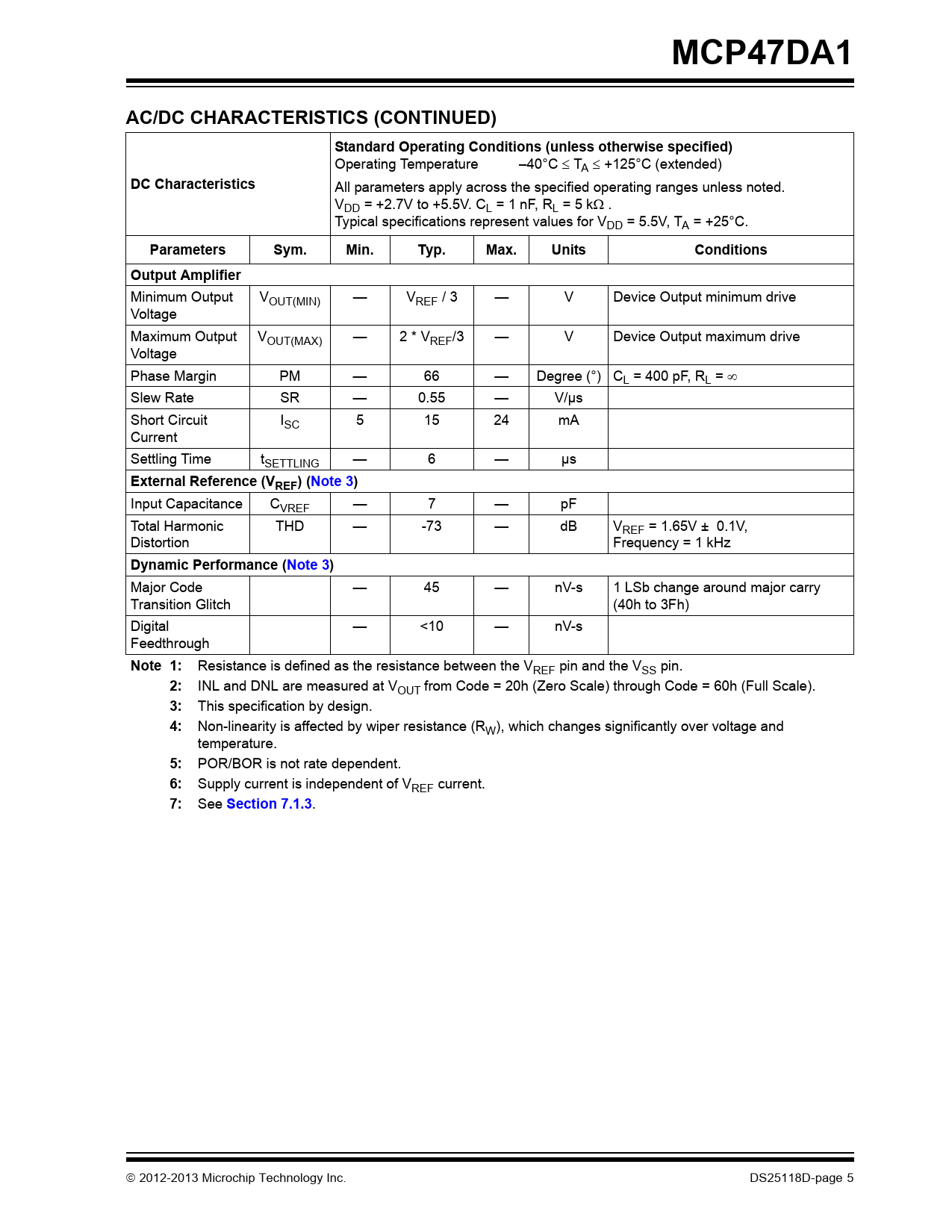| Seiten / Seite | 76 / 5 — MCP47DA1. AC/DC CHARACTERISTICS (CONTINUED). Standard Operating … |