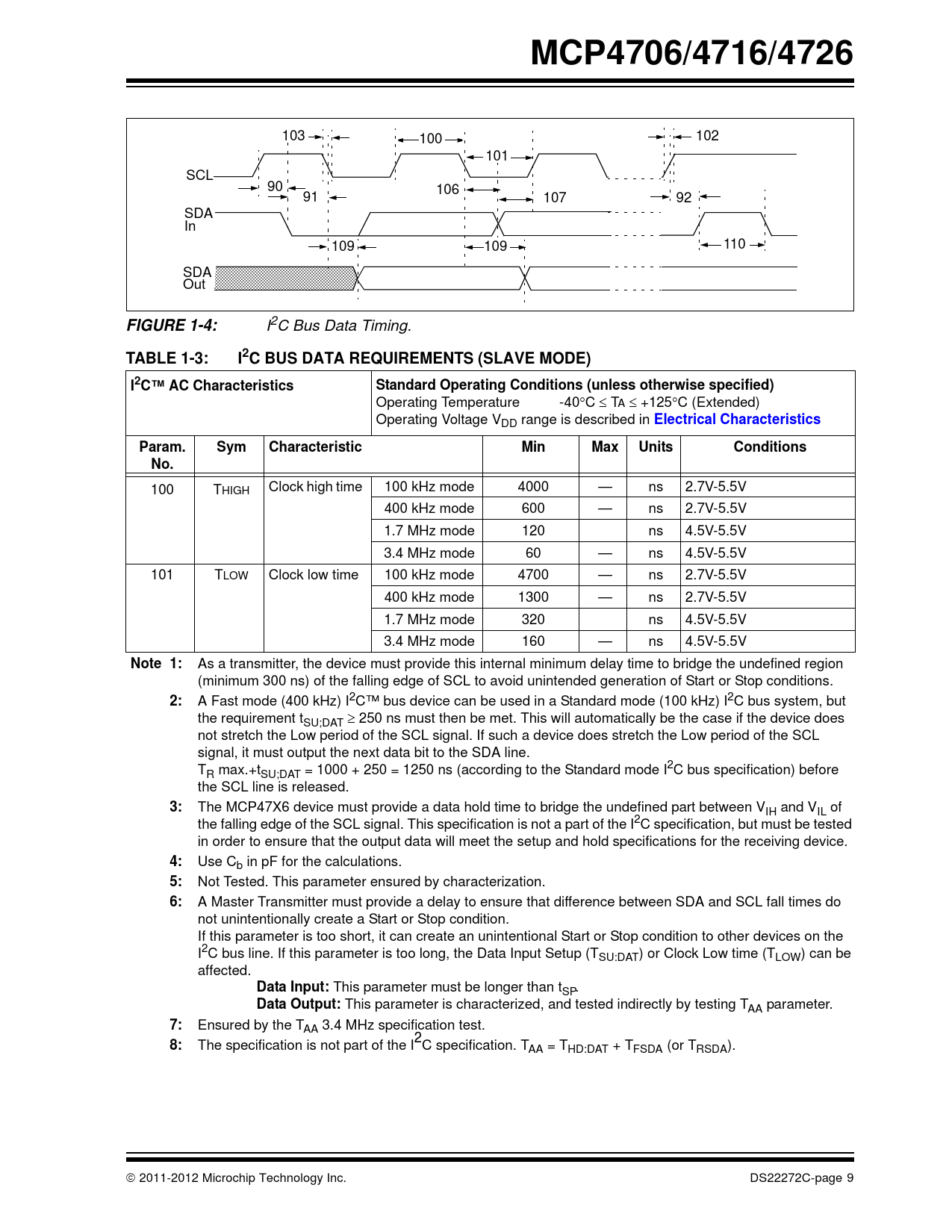 | Seiten / Seite | 86 / 9 — MCP4706/4716/4726. FIGURE 1-4:. TABLE 1-3:. I2C BUS DATA REQUIREMENTS … |