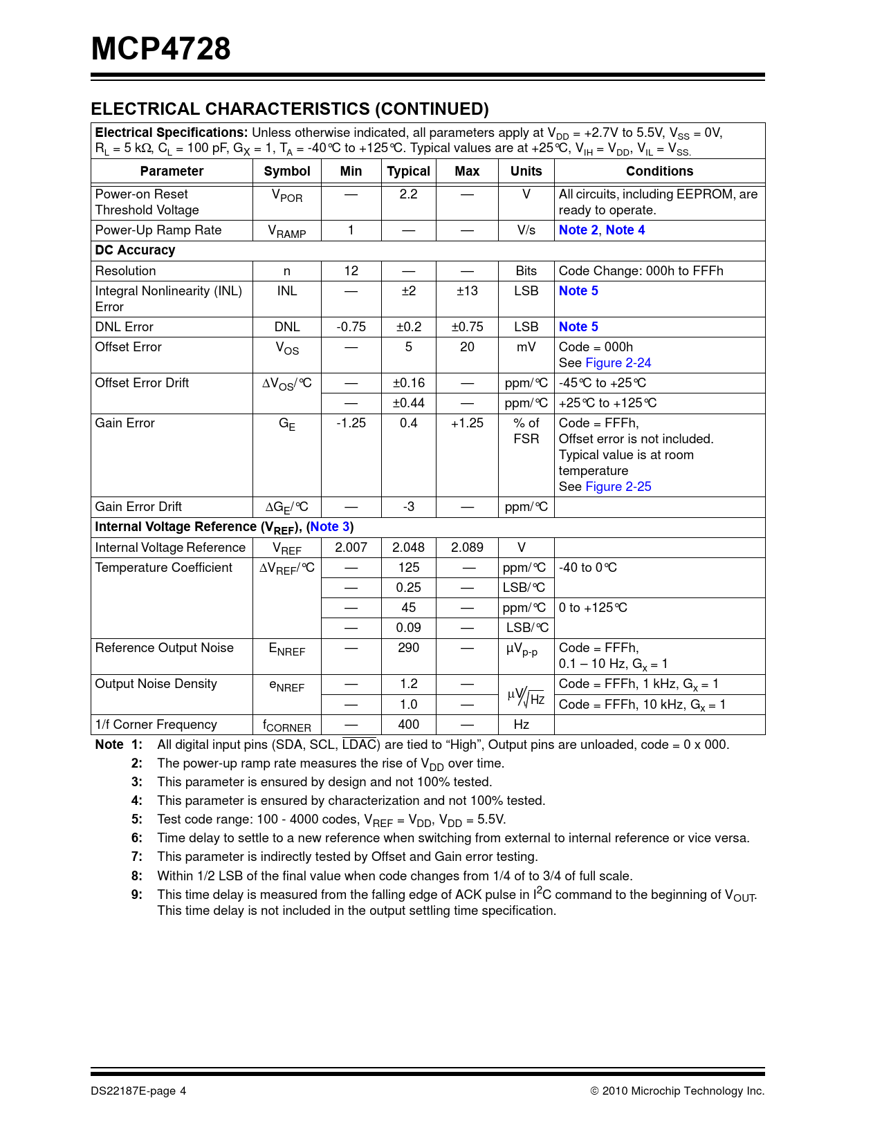 MCP4728 ELECTRICAL CHARACTERISTICS (CONTINUED) Electrical Specifications: