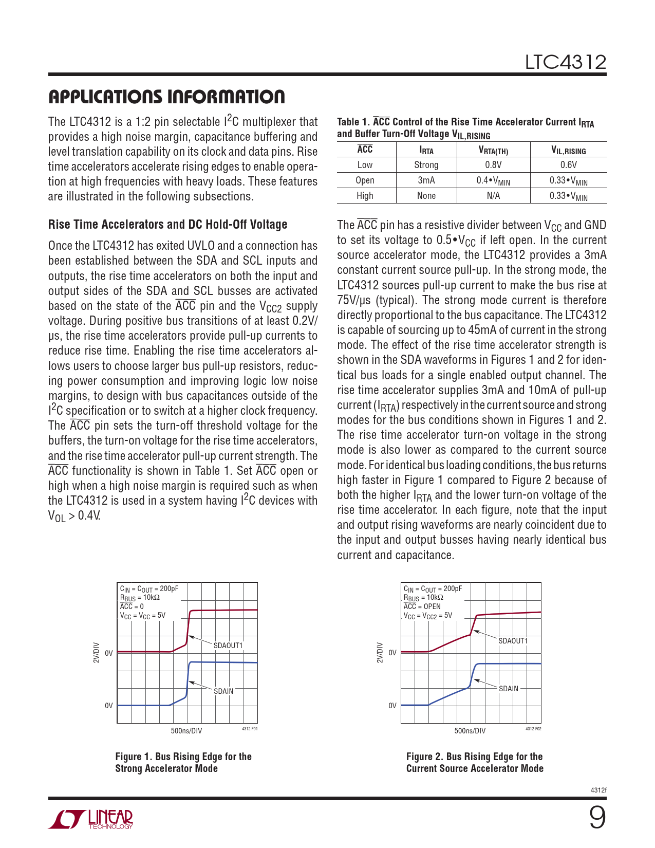 APPLICATIONS INFORMATION. Table 1. ACC Control of the Rise Time Accelerator Current IRTA