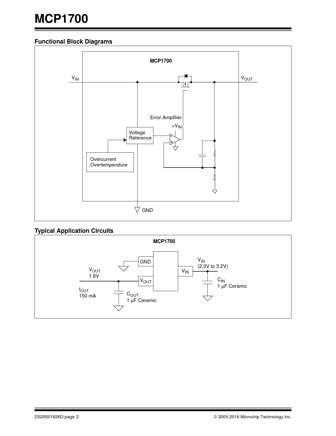 MCP1700. Functional Block Diagrams. VOUT VIN Error Amplifier. +VIN. Voltage. Reference + Overcurrent