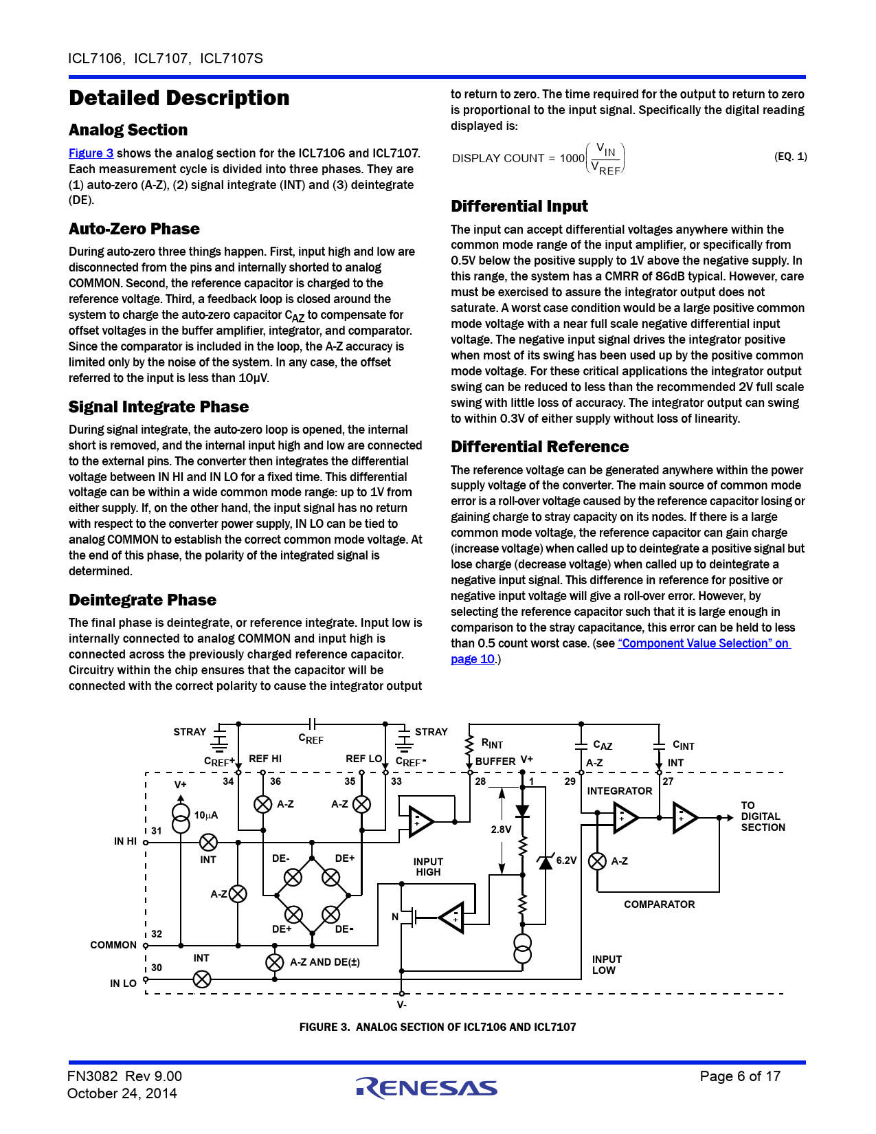 FIGURE 3. ANALOG SECTION OF ICL7106 AND ICL7107 FN3082 Rev 9.00 Page 6 of 17 October 24, 2014
