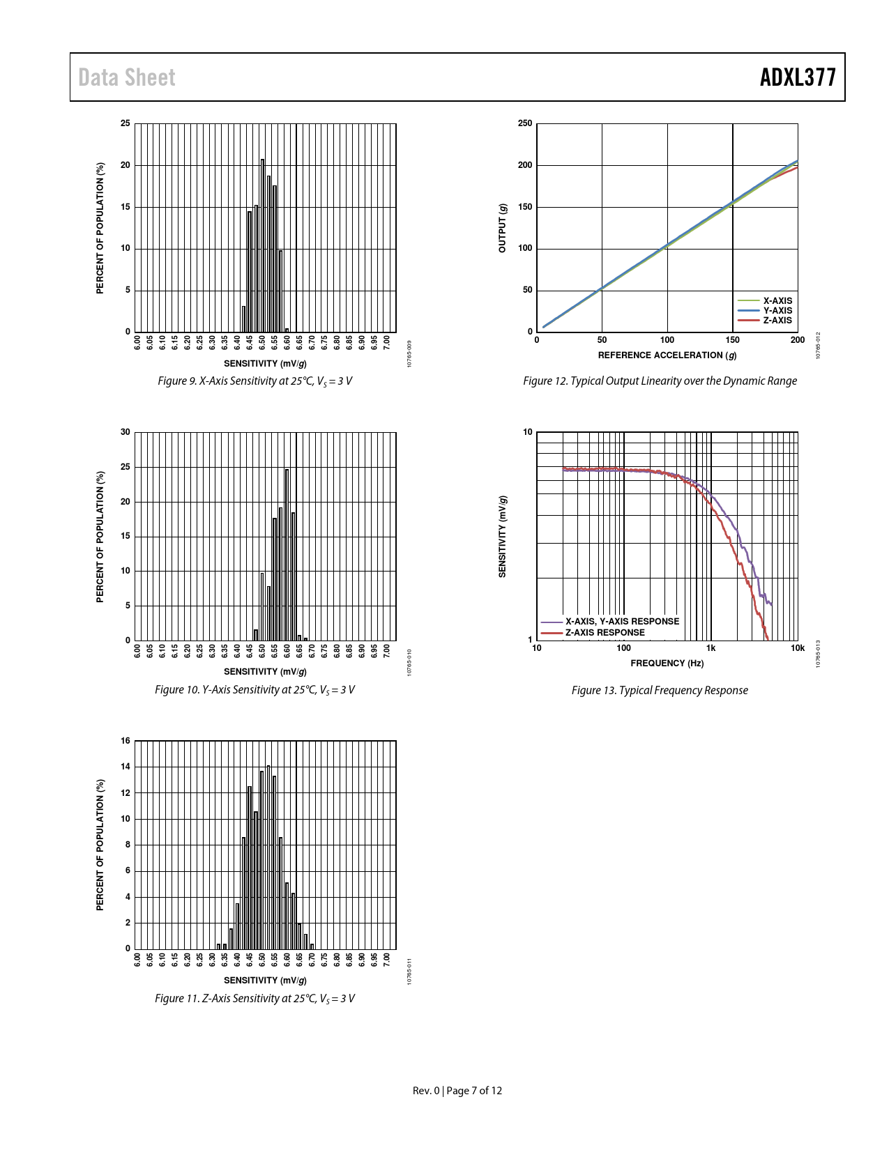 Data Sheet ADXL377 250 200 % ( TION 150 T ( U TP 100 T OF P N E C R E P X-AXIS Y-AXIS Z-AXIS REFERENCE ACCELERATION (g