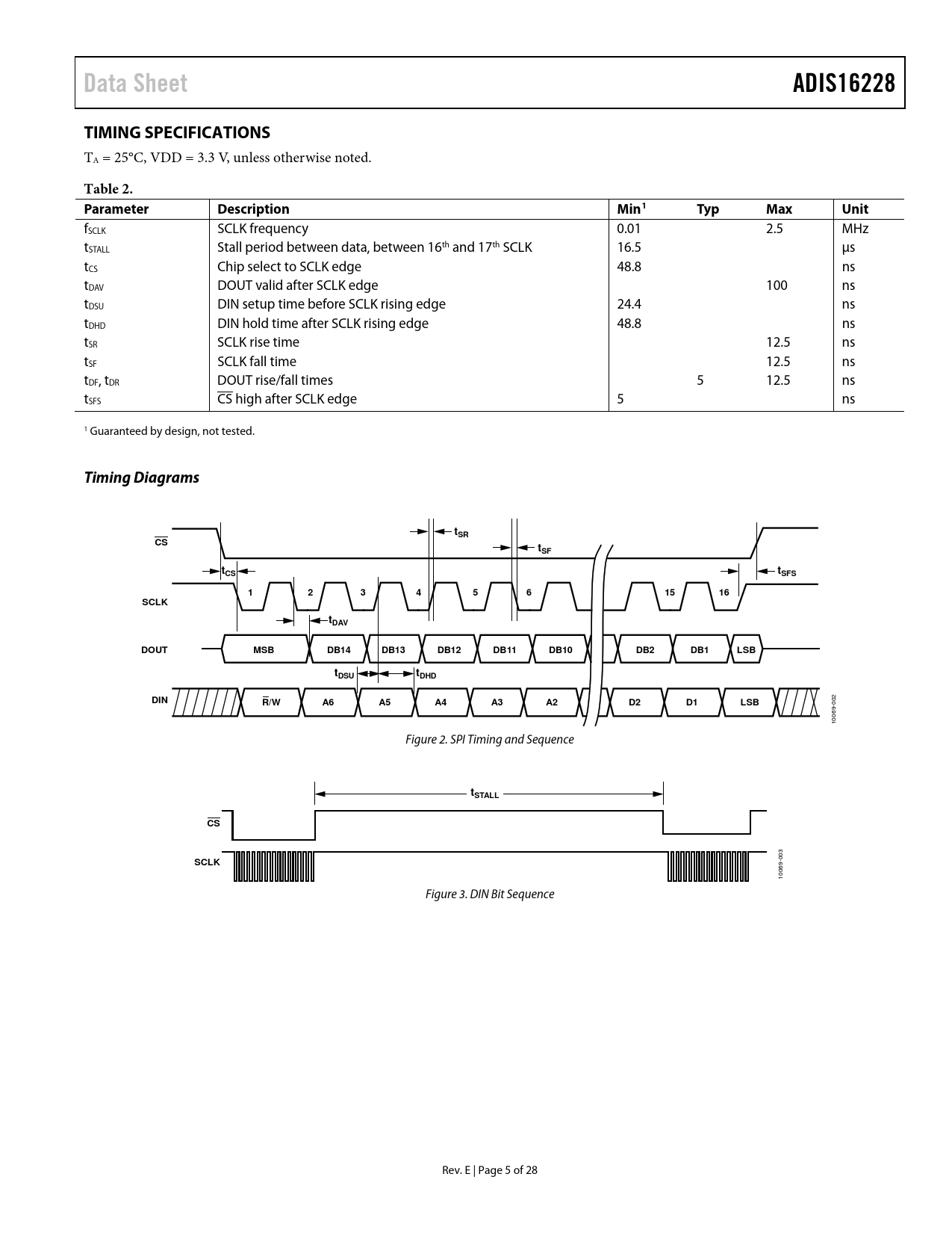 Data Sheet ADIS16228 TIMING SPECIFICATIONS Table 2 Parameter Description Min1 Typ Max Unit Timing Diagrams tSR tSF tCS tSFS SCLK tDAV