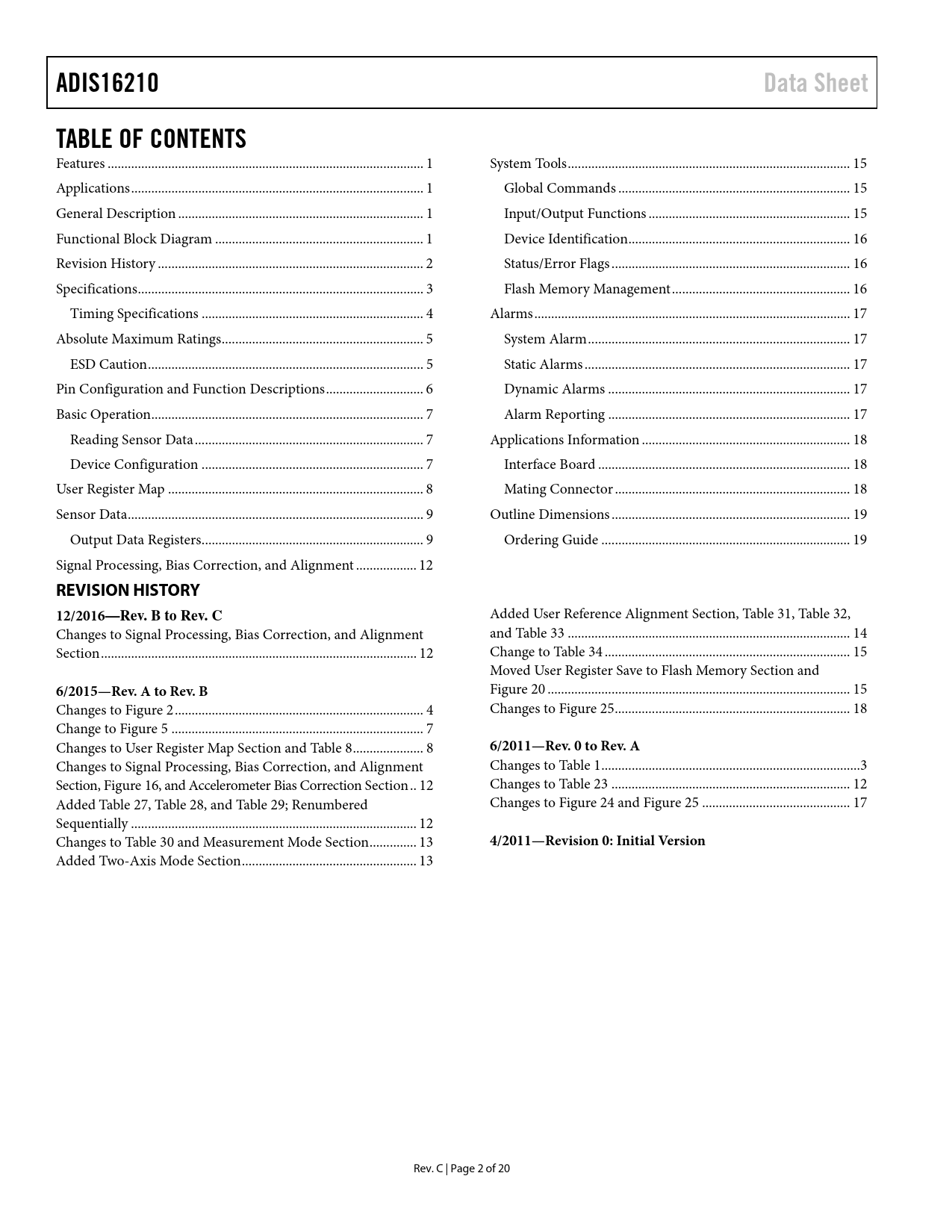 Seiten / Seite21 / 3 — ADIS16210. Data Sheet. TABLE OF CONTENTS. REVISION HISTORY 12/2016—Rev. B …