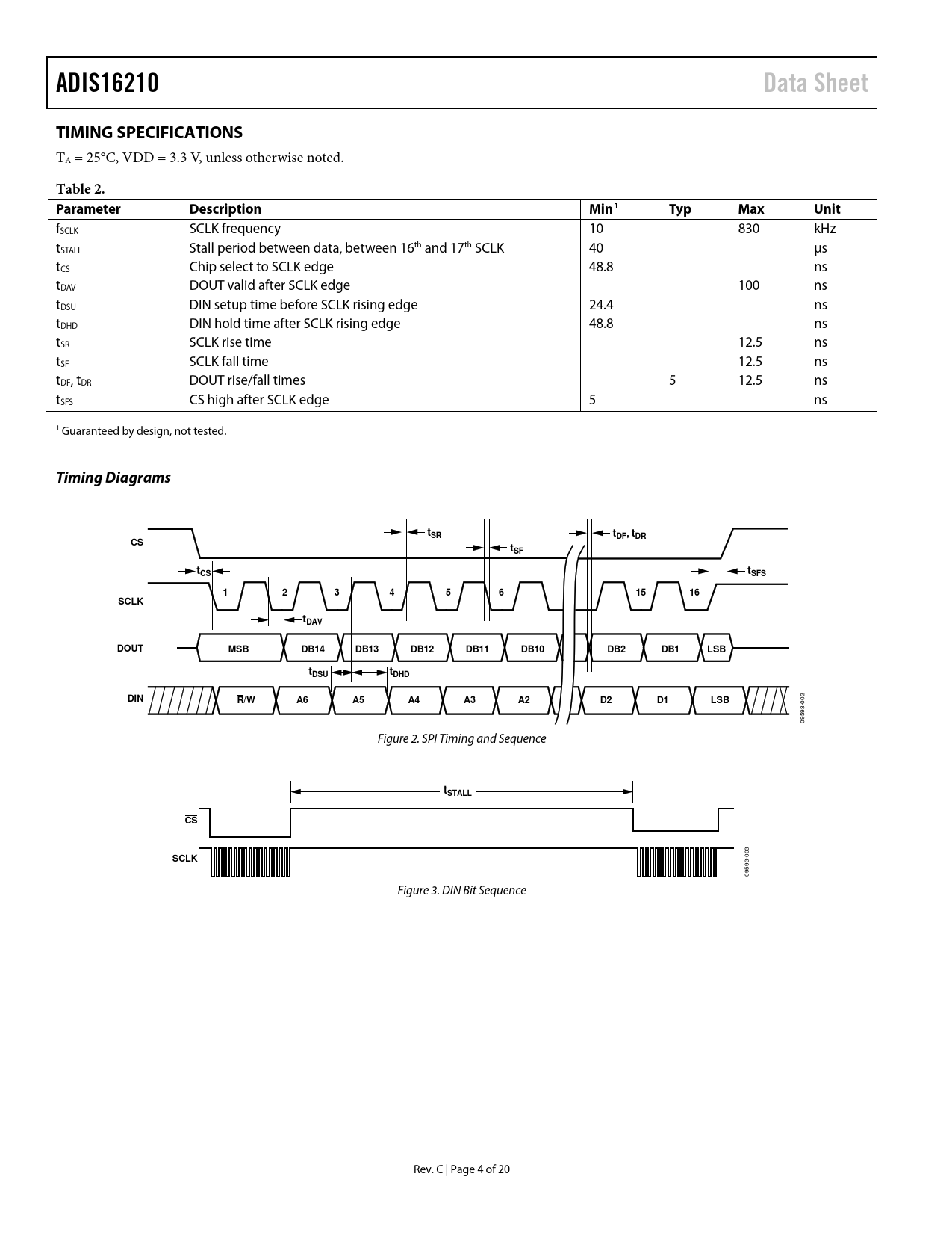 Seiten / Seite21 / 5 — ADIS16210. Data Sheet. TIMING SPECIFICATIONS. Table 2. Parameter. …