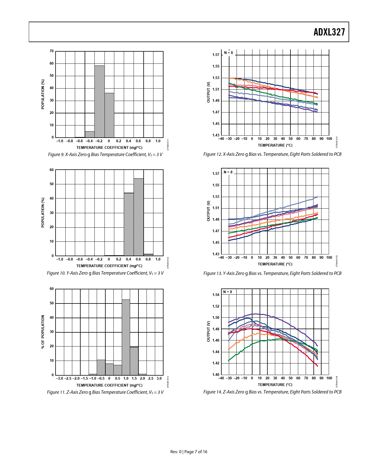 794 0 0 Figure 9. X-Axis Zero g Bias Temperature Coefficient, VS = 3 V Figure 12. X-Axis Zero g Bias vs. Temperature, Eight Parts Soldered to PCB