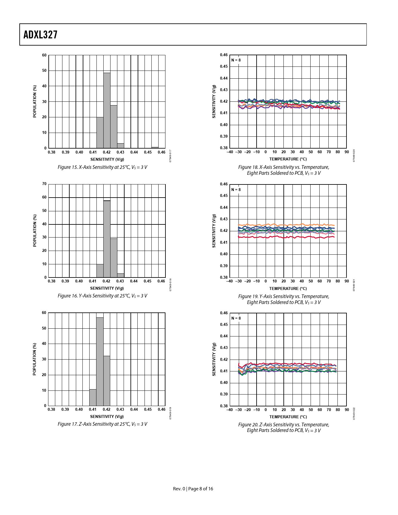 ADXL327. 0.46. N = 8. 0.45. 0.44. 0.43. V/ ( Y. ION. 0.42. IVI. L U. 0.41. SEN. 0.40. 0.39. 0.38. –40 –30 –20 –10. SENSITIVITY (V/g. TEMPERATURE (°C). Y T. T A