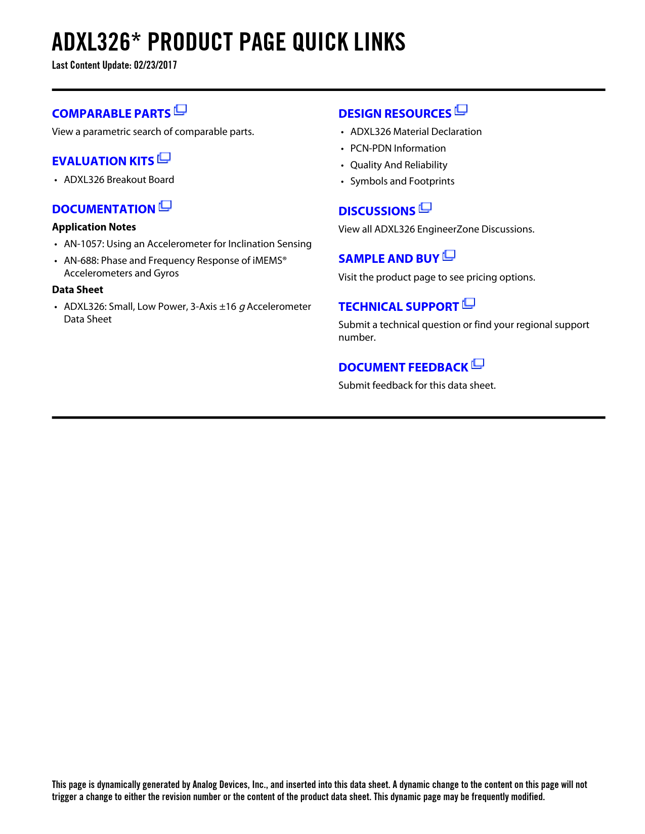 Seiten / Seite17 / 2 — ADXL326* PRODUCT PAGE QUICK LINKS Last Content Update: 02/23/2017. …