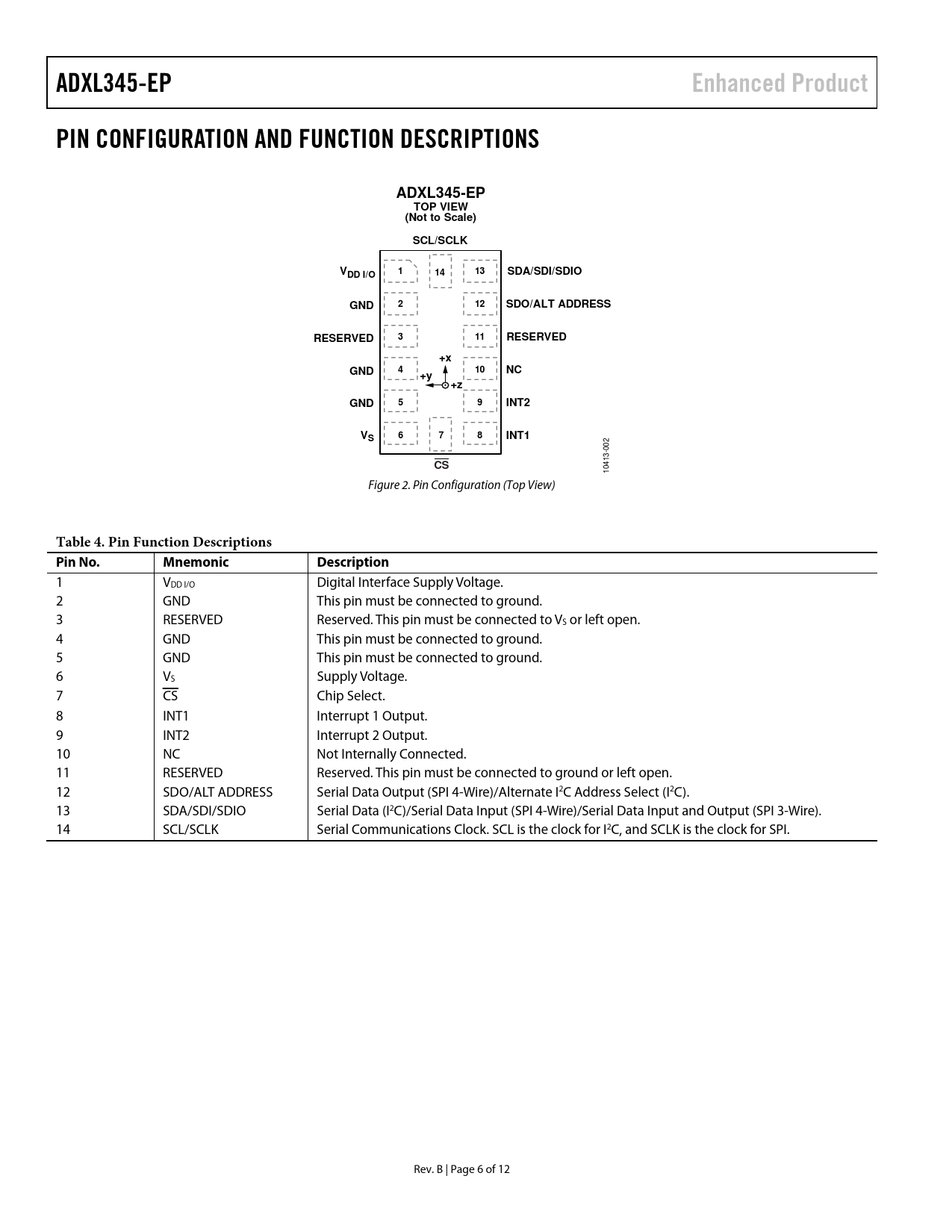 Seiten / Seite12 / 6 — ADXL345-EP. Enhanced Product. PIN CONFIGURATION AND FUNCTION …