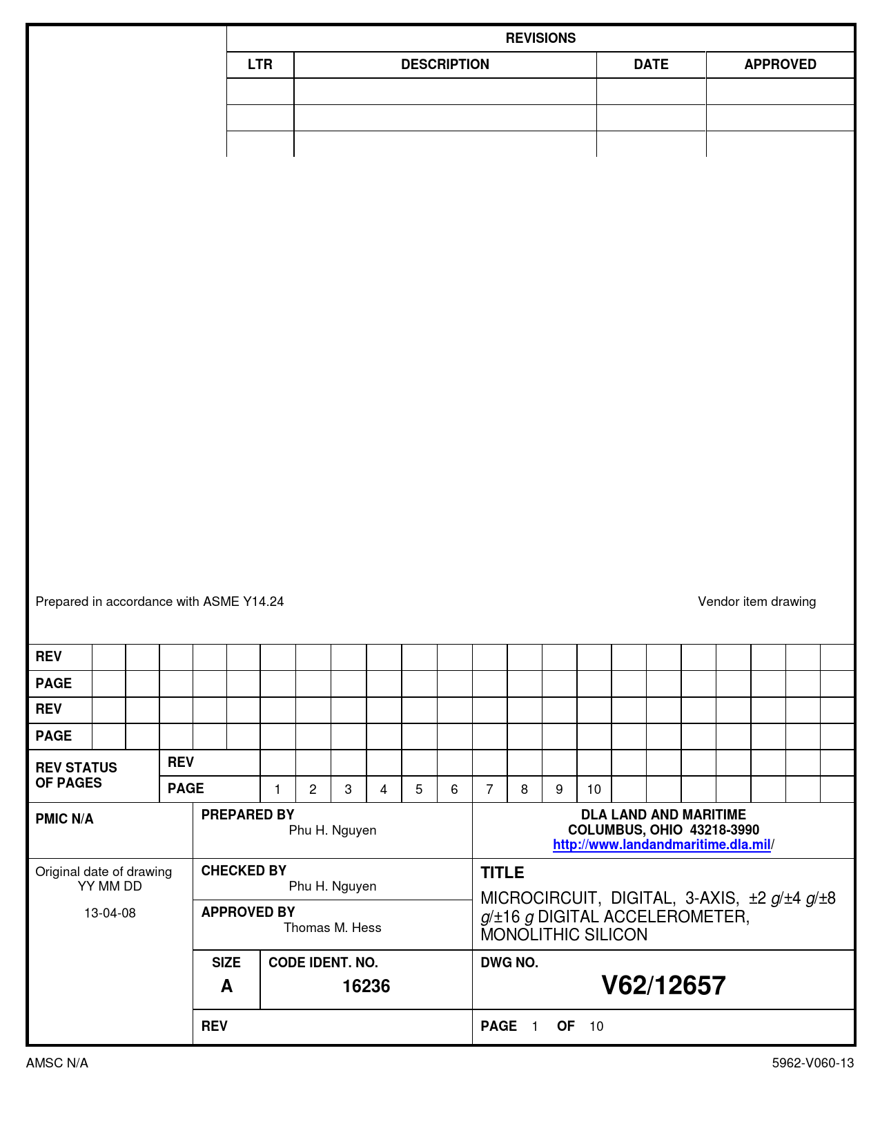 YY MM DD Phu H. Nguyen MICROCIRCUIT, DIGITAL, 3-AXIS, ±2 g/±4 g/±8 13-04-08