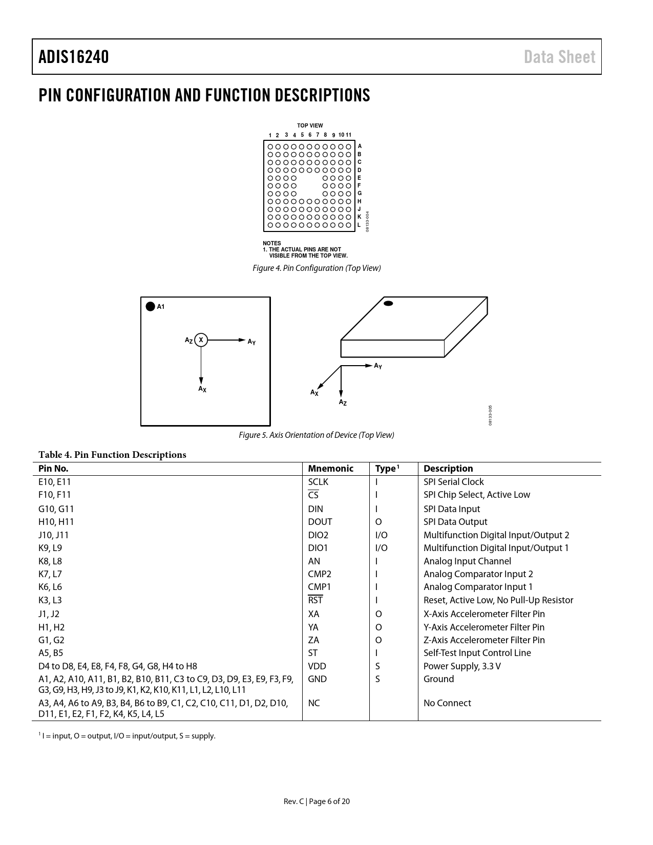 ADIS16240 Data Sheet PIN CONFIGURATION AND FUNCTION DESCRIPTIONS TOP VIEW 1 2 3 4 5 6 7 8 9 10 11 A B C D E F G H J K