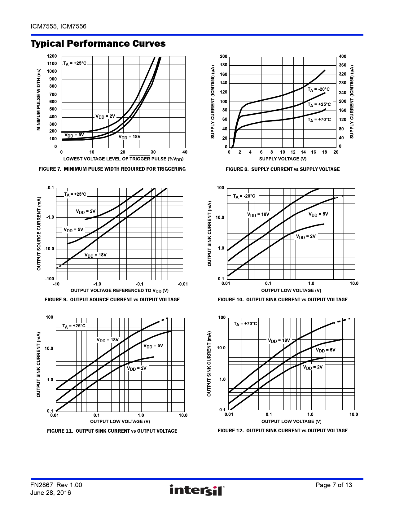 FIGURE 11. OUTPUT SINK CURRENT vs OUTPUT VOLTAGE FIGURE 12. OUTPUT SINK CURRENT vs OUTPUT VOLTAGE FN2867 Rev 1.00 Page 7 of 13 June 28, 2016