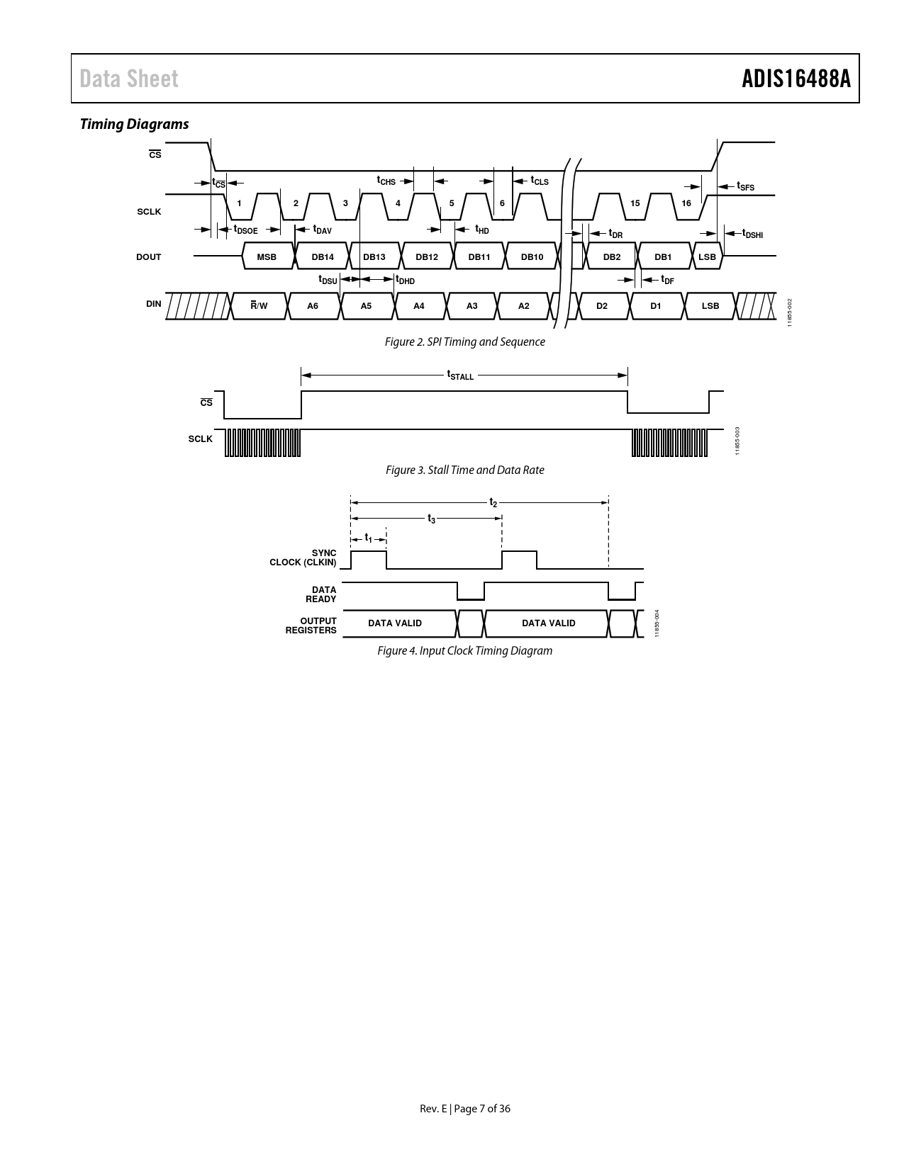 | Seiten / Seite | 36 / 7 — Data Sheet. ADIS16488A. Timing Diagrams. CHS. tCLS. tSFS. SCLK. DSOE. … |