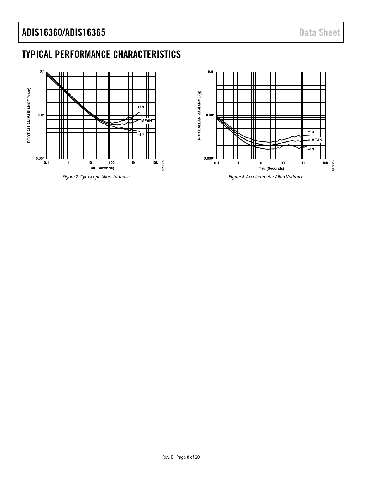 ADIS16360/ADIS16365. Data Sheet. TYPICAL PERFORMANCE CHARACTERISTICS. 0.1. 0.01. ) (g. (°/sec). +1σ. 0.001. MEAN. –1σ. 0.0001. 100. 10k