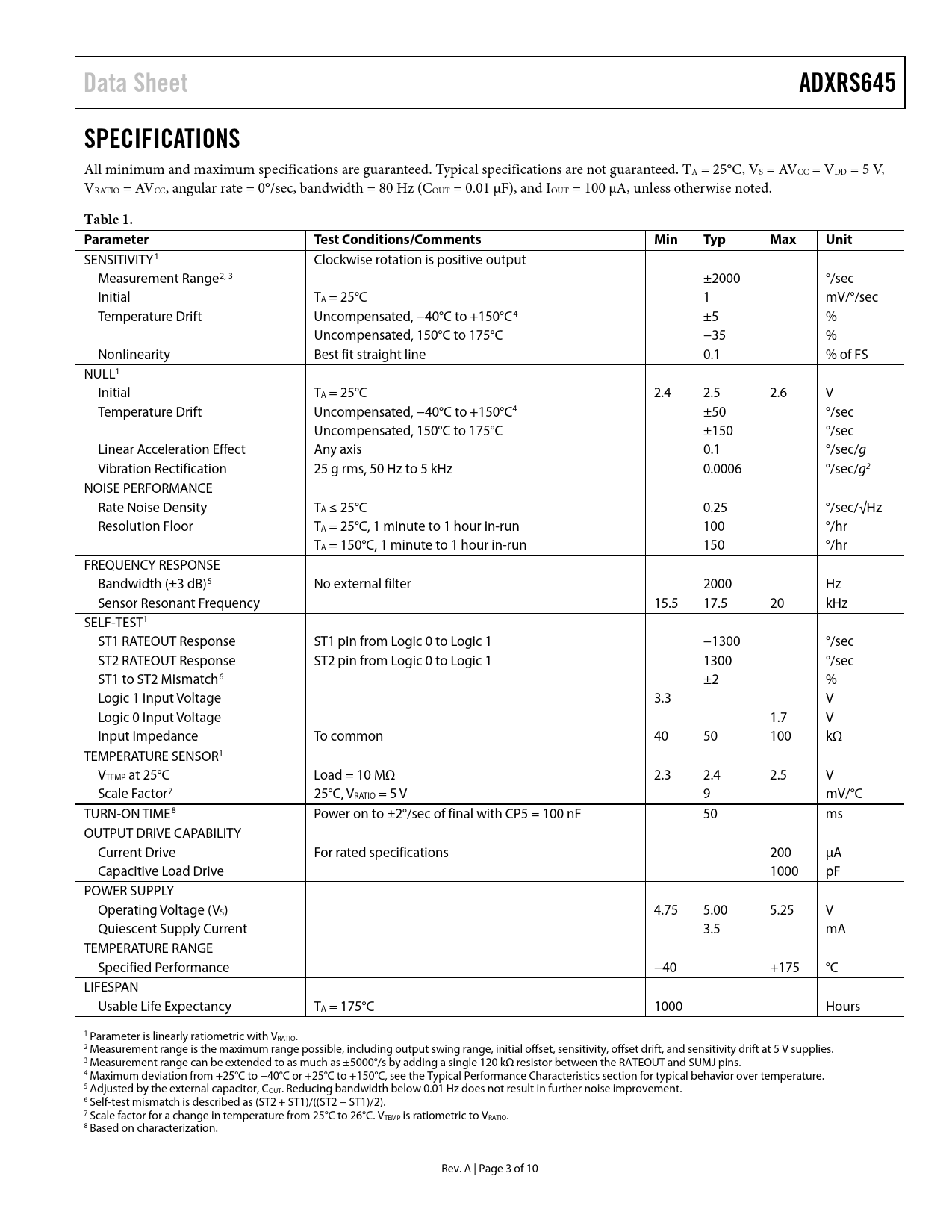 Data Sheet ADXRS645 SPECIFICATIONS