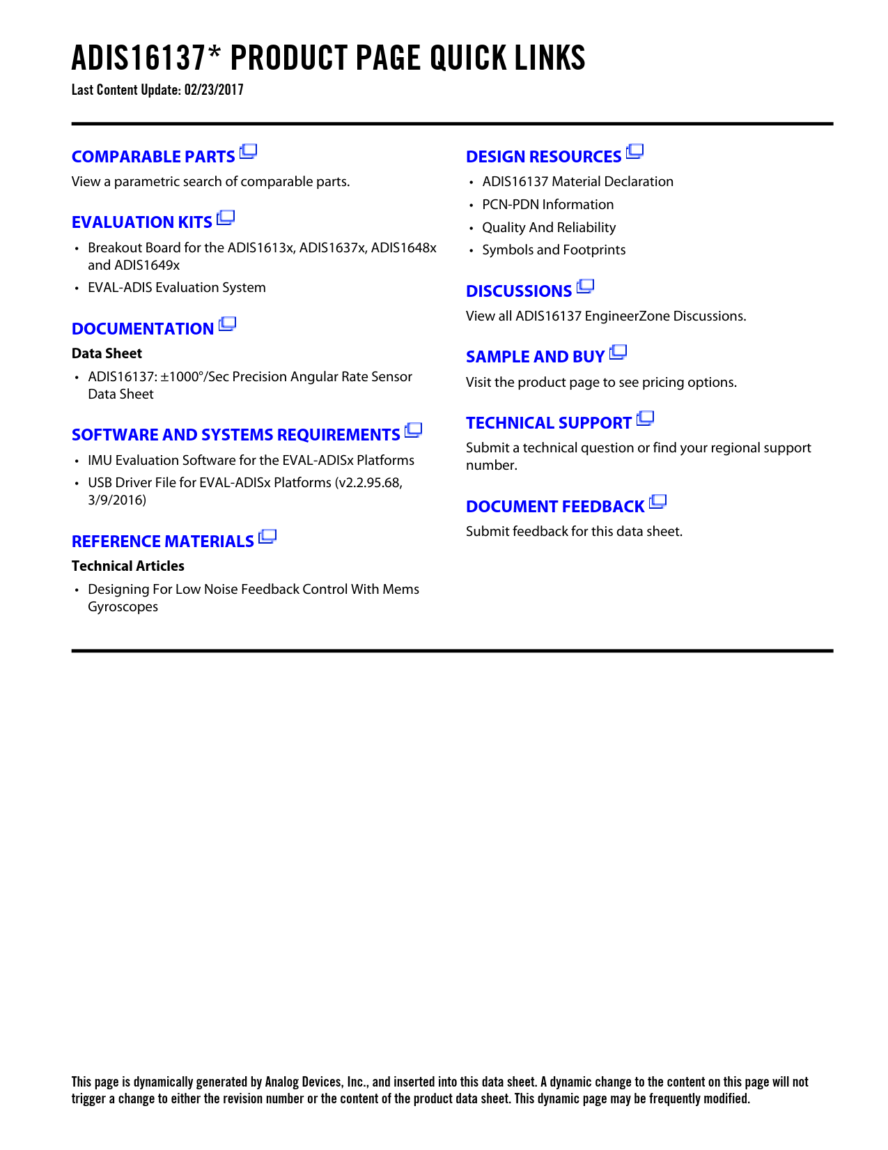 Seiten / Seite21 / 2 — ADIS16137* PRODUCT PAGE QUICK LINKS Last Content Update: 02/23/2017. …