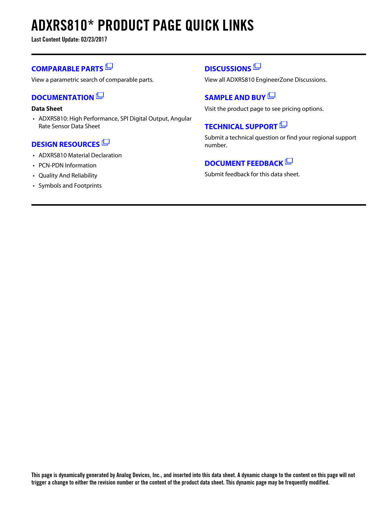 Seiten / Seite29 / 2 — ADXRS810* PRODUCT PAGE QUICK LINKS Last Content Update: 02/23/2017. …