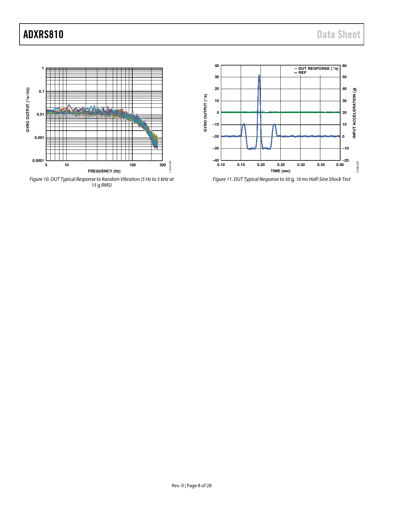 ADXRS810. Data Sheet. DUT RESPONSE (°/s) REF. 0.1. √Hz. N (. °/s/. °/s. T (. RAT E. 0.01. O OU. –10. ACCE. 0.001. –20. INP. –30. 0.0001. –40. 100. 300. 0.10. 0.15