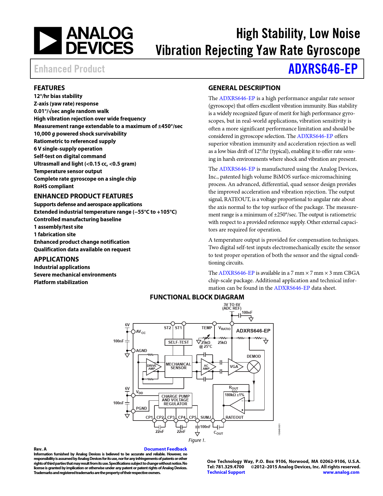 High Stability, Low Noise. Vibration Rejecting Yaw Rate Gyroscope. Enhanced Product. ADXRS646-EP. FEATURES. GENERAL DESCRIPTION