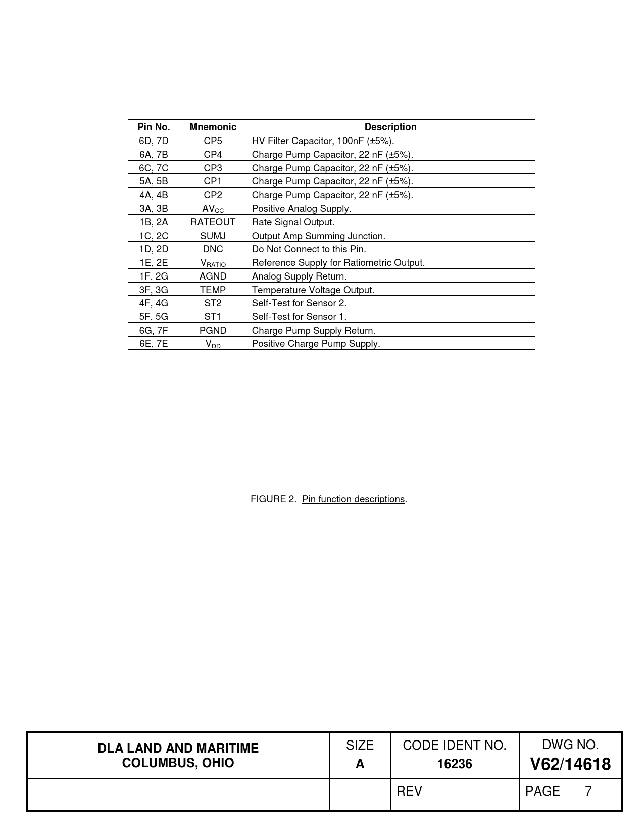Pin No. Mnemonic. Description. DLA LAND AND MARITIME. COLUMBUS, OHIO. 16236. V62/14618
