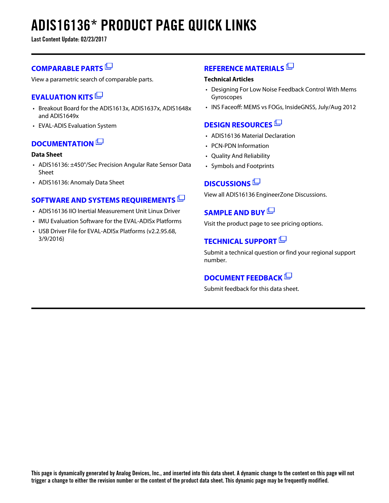 Seiten / Seite21 / 2 — ADIS16136* PRODUCT PAGE QUICK LINKS Last Content Update: 02/23/2017. …