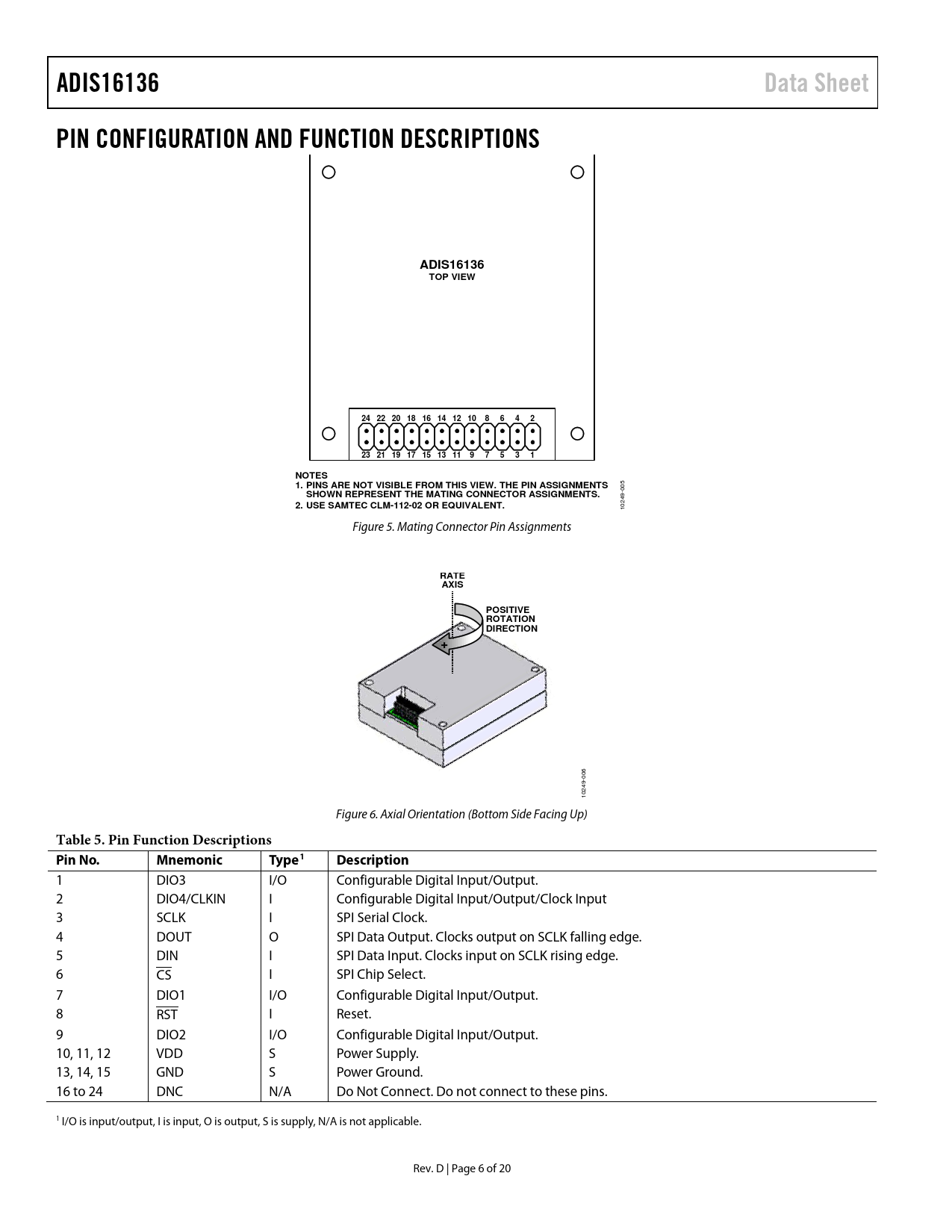 Seiten / Seite21 / 7 — ADIS16136. Data Sheet. PIN CONFIGURATION AND FUNCTION DESCRIPTIONS. TOP …