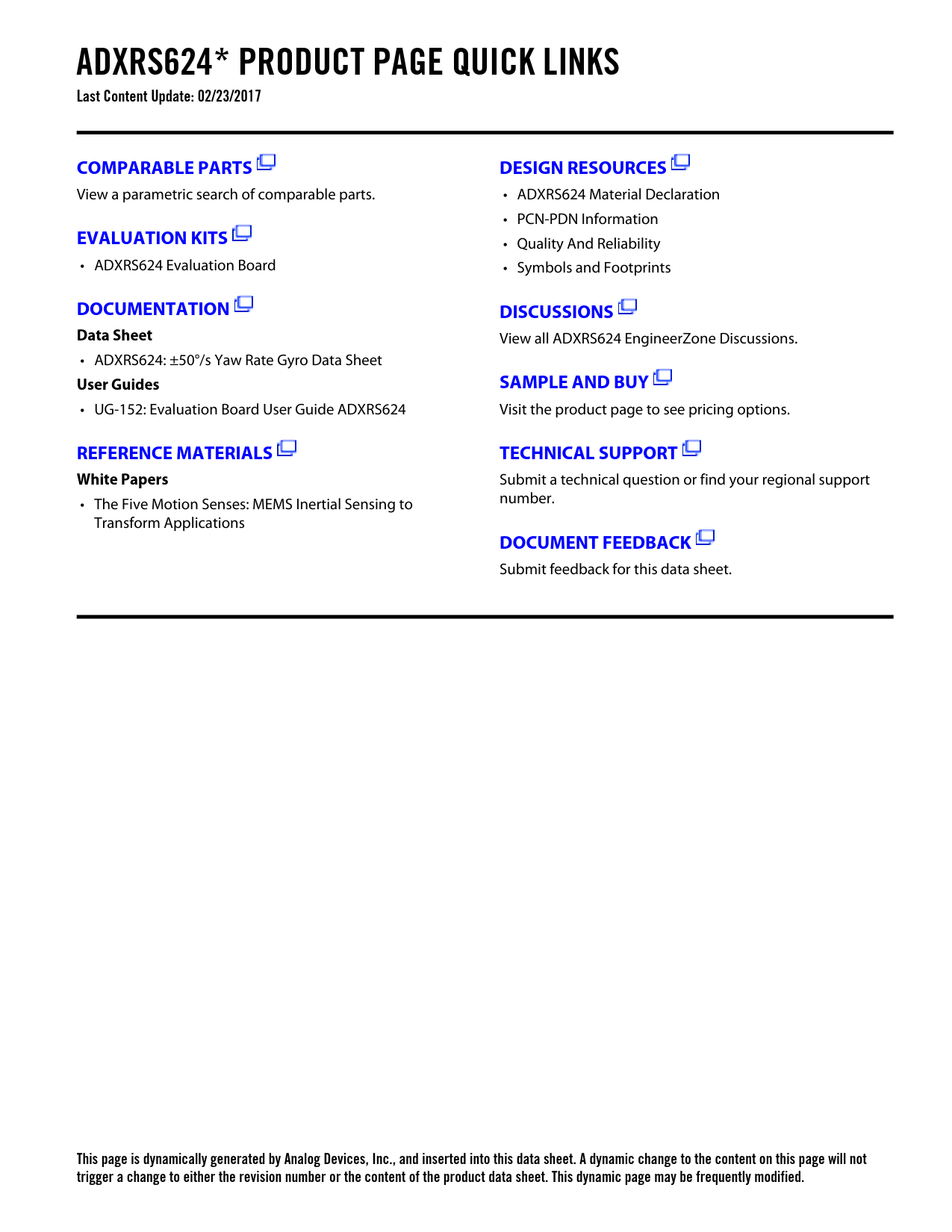 ADXRS624* PRODUCT PAGE QUICK LINKS Last Content Update: 02/23/2017 COMPARABLE PARTS DESIGN RESOURCES
