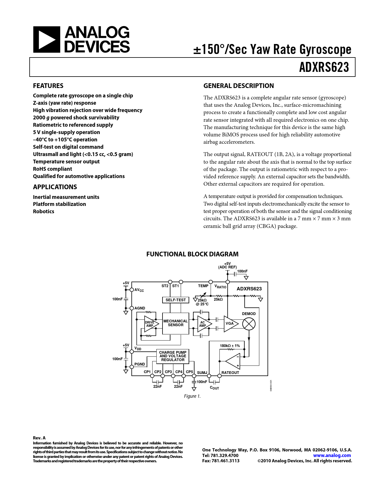 ±150°/Sec Yaw Rate Gyroscope. ADXRS623. FEATURES. GENERAL DESCRIPTION. Complete rate gyroscope on a single chip