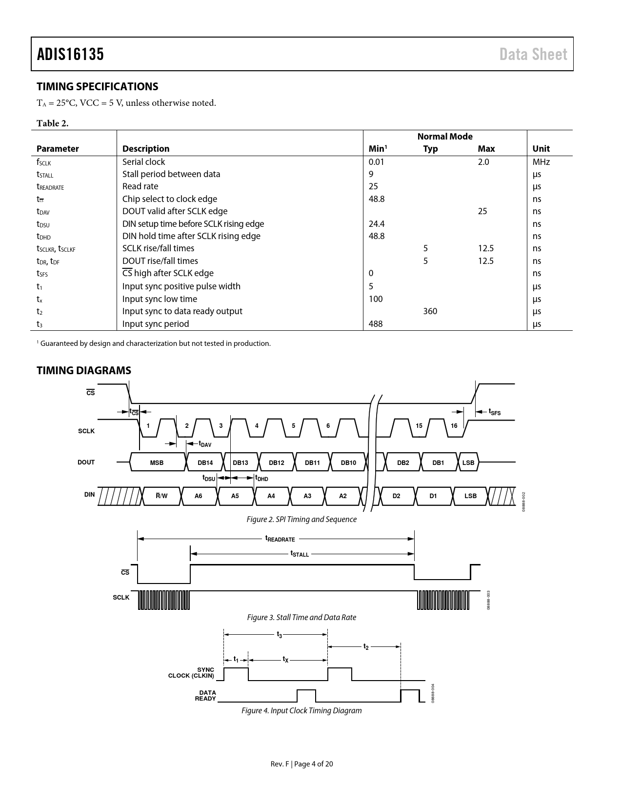 Seiten / Seite21 / 5 — ADIS16135. Data Sheet. TIMING SPECIFICATIONS. Table 2. Normal Mode. …