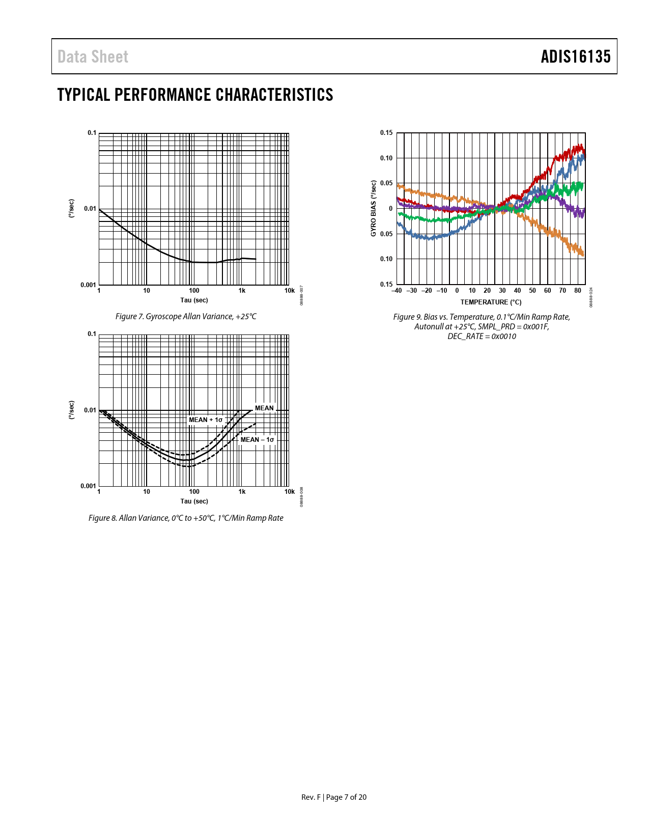 08 08 Figure 7. Gyroscope Allan Variance, +25°C Figure 9. Bias vs. Temperature, 0.1°C/Min Ramp Rate, Autonull at +25°C, SMPL_PRD = 0x001F,