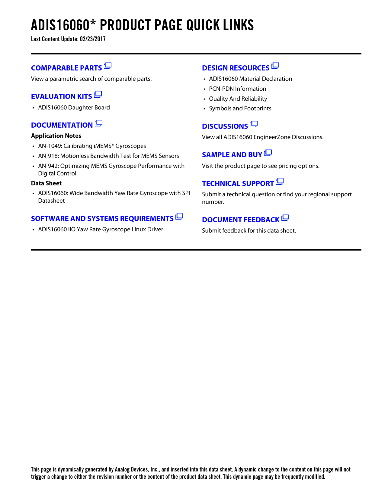 This page is dynamically generated by Analog Devices, Inc., and inserted into this data sheet. A dynamic change to the content on this page will not trigger a change to either the revision number or the content of the product data sheet. This dynamic page may be frequently modified.