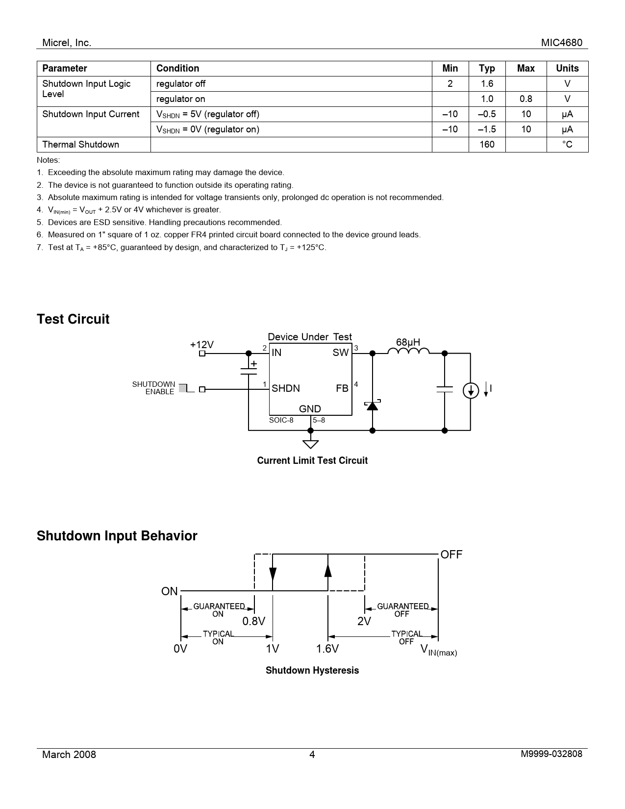 Seiten / Seite15 / 4 — Micrel, Inc. MIC4680 Parameter Condition Min Typ Shutdown Input Logic. …
