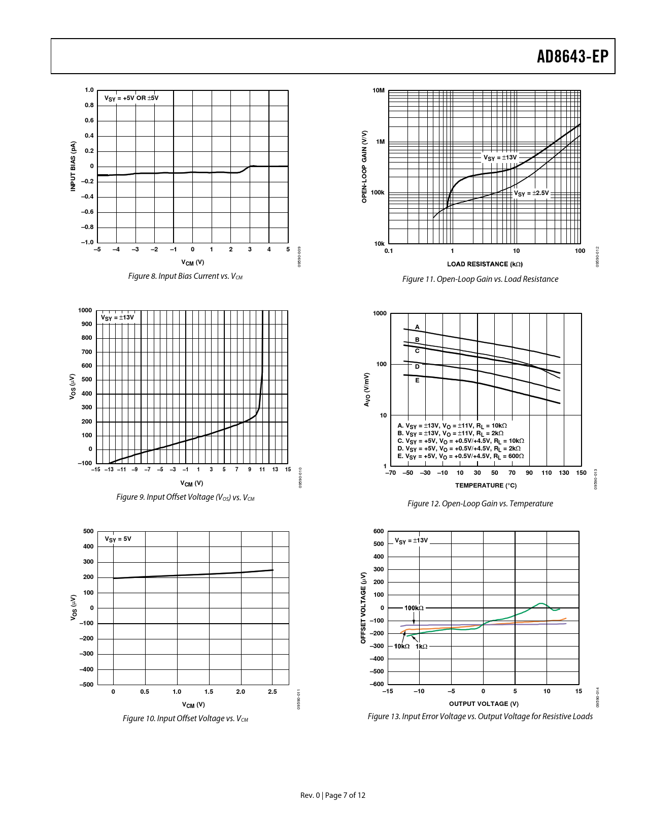 959 0 09 Figure 8. Input Bias Current vs. VCM Figure 11. Open-Loop Gain vs. Load Resistance