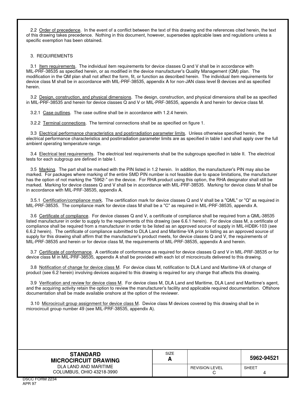 DLA LAND AND MARITIME REVISION LEVEL SHEET COLUMBUS, OHIO 43218-3990 C 4 DSCC FORM 2234 APR 97