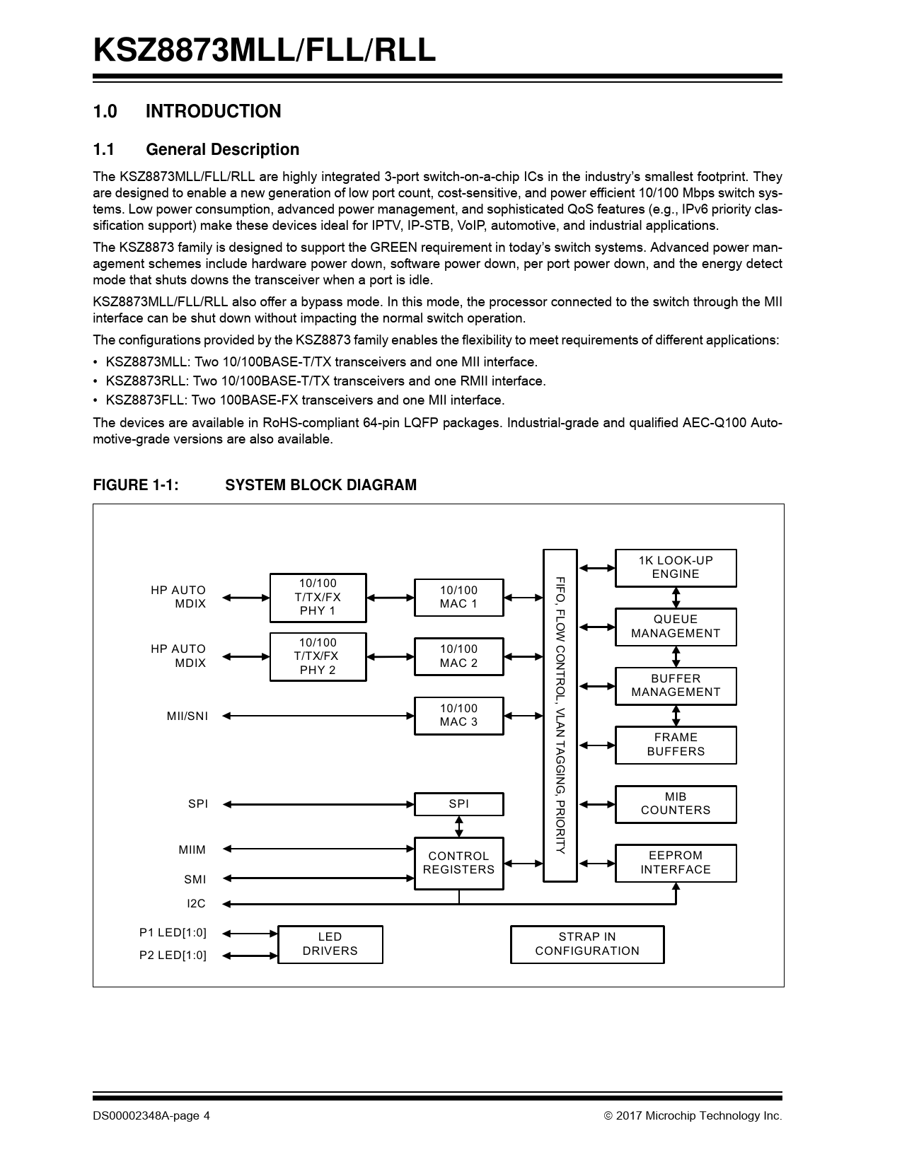 Datasheet KSZ8873MLL, KSZ8873FLL, KSZ8873RLL (Microchip) - 4