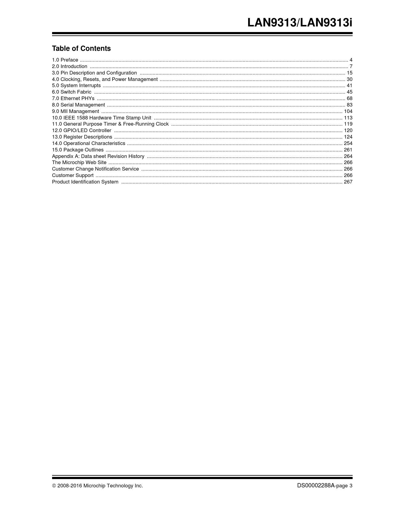 | Seiten / Seite | 269 / 3 — LAN9313/LAN9313i. Table of Contents |